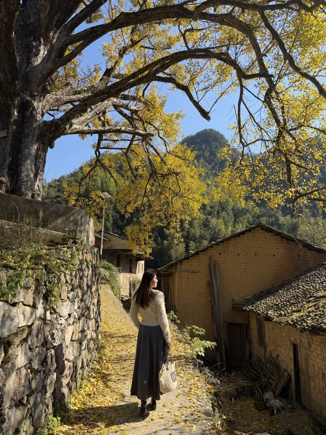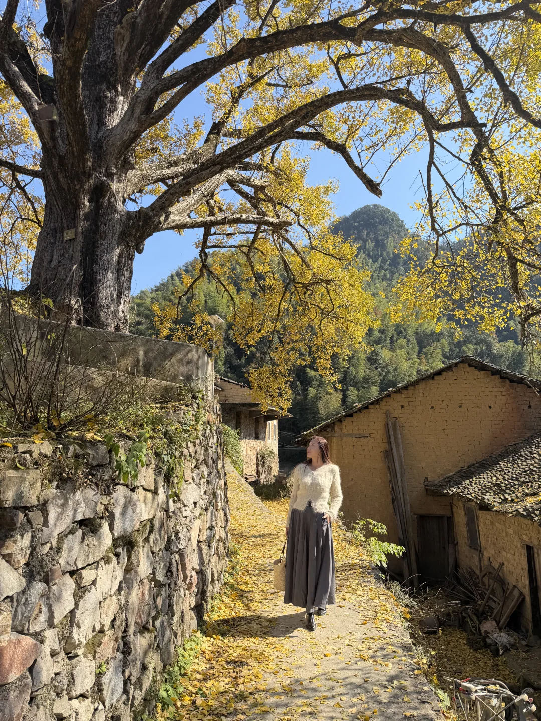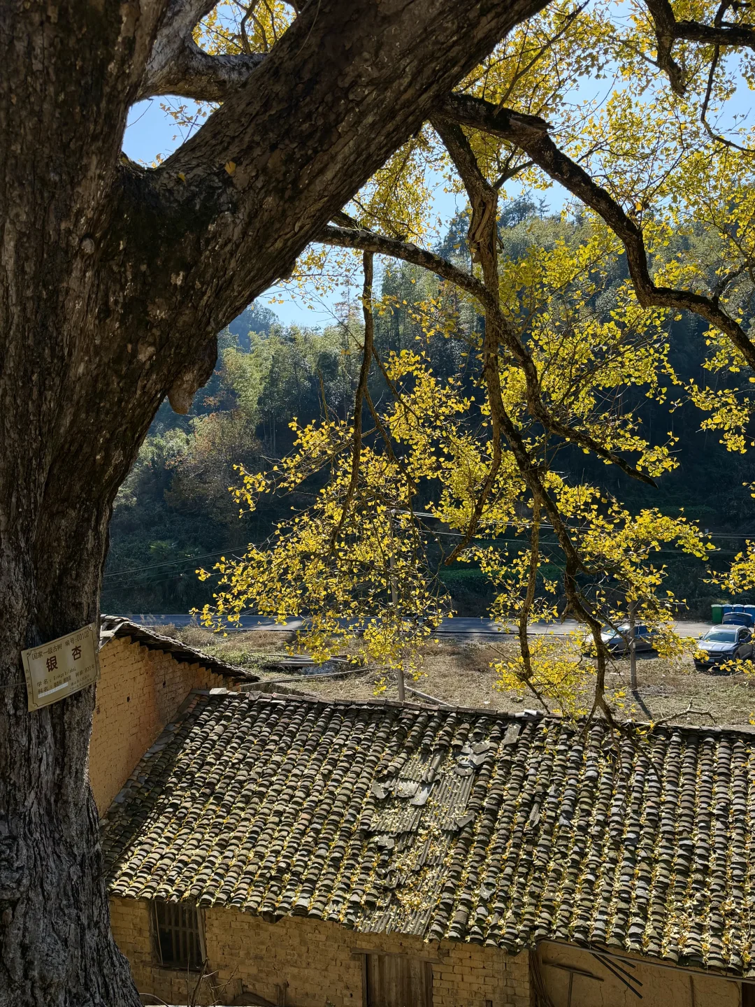 在咸宁通山程家垅村,藏着一颗八百多年的超大银杏树,这几天正值最佳观赏期,满树金黄、落叶缤纷,与古老民居相映,像油画一样美。估计还有一周左右的观赏时间,错过就要等明年了。 🍁直接导航🧭咸宁通山程家垅村,到达目的地即可看到高大的古树,路边可免费停车,村里很原始,没有任何商业配套,吃饭可以去附近的刘家桥。 🍁尽量选择晴天去,才能拍出漂亮的颜色,4点以后就没阳光了。 🍁中午之前抵达游人会少点,到下午游人越来越多,机位被占就无法拍出美美的照片了