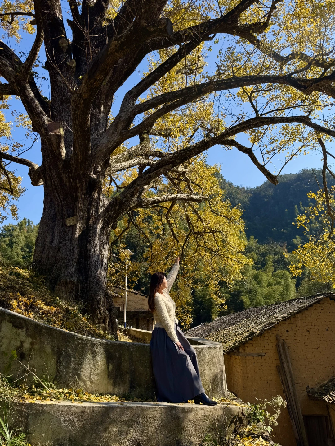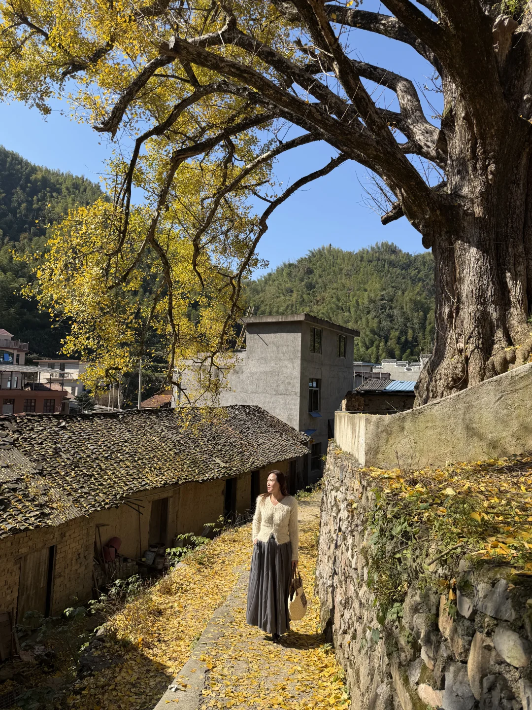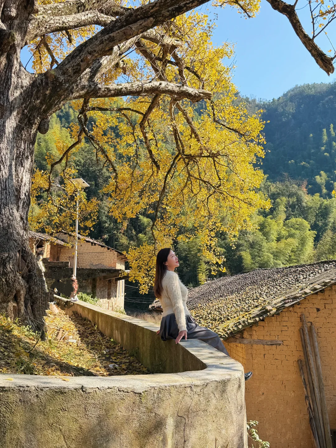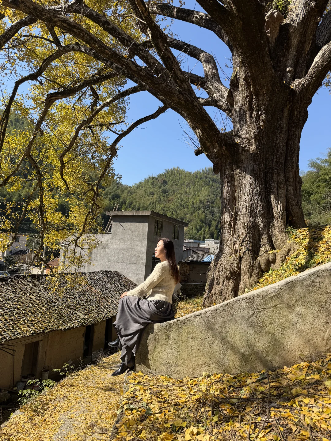 在咸宁通山程家垅村,藏着一颗八百多年的超大银杏树,这几天正值最佳观赏期,满树金黄、落叶缤纷,与古老民居相映,像油画一样美。估计还有一周左右的观赏时间,错过就要等明年了。 🍁直接导航🧭咸宁通山程家垅村,到达目的地即可看到高大的古树,路边可免费停车,村里很原始,没有任何商业配套,吃饭可以去附近的刘家桥。 🍁尽量选择晴天去,才能拍出漂亮的颜色,4点以后就没阳光了。 🍁中午之前抵达游人会少点,到下午游人越来越多,机位被占就无法拍出美美的照片了