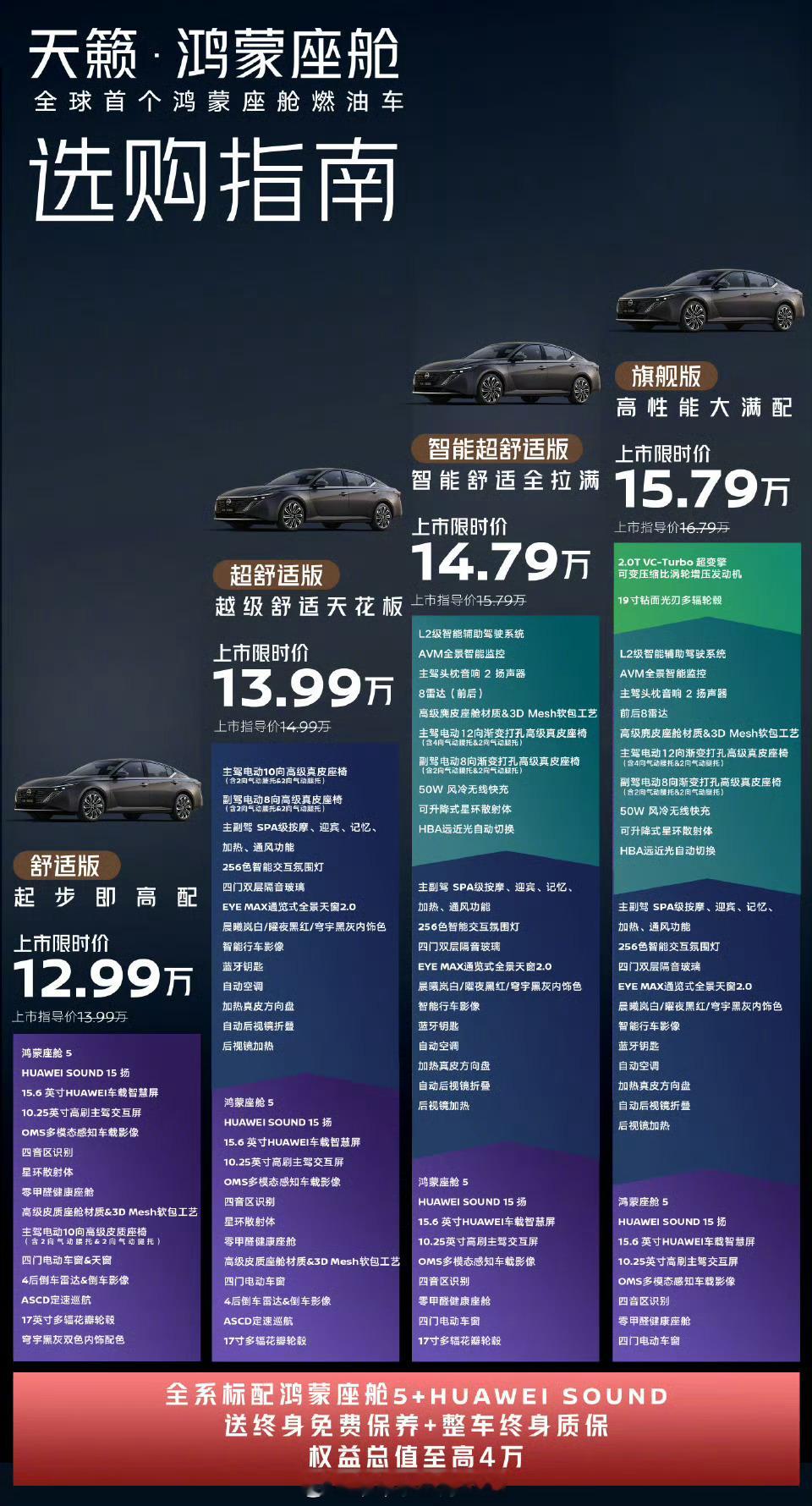 又想要新势力智能,又想要燃油车的驾驶体验,该怎么办?12.99万,日产天籁这个回答相当靠谱。因为它就是新势力和燃油车的结合。全系标配鸿蒙座舱,重新定义了燃油车智能化的上限。在智能化方面,很多人觉得燃油车跟不上,但是现在的天籁,搭载与问界同源的 HarmonySpace 5 系统,支持跨设备无缝流转、AI语音连续对话等场景化功能。配备 15.6英寸HUAWEI车载智慧屏,界面响应速度媲美新势力车型,天籁·鸿蒙座舱车机流畅度甚至杀入全车型榜单前15!其导航规划响应速度、座椅调节响应时延等关键项目,更是在测试中斩获第一名。在舒适度方面,天籁原本就是冰箱彩电大沙发中的大沙发引领者,天籁标志性 “大沙发”座椅,升级“女王副驾”配置,有通风/加热/8点按摩。天籁和华为这波合作,让想要新势力智能和燃油车驾驶体验的人,可以全都要了