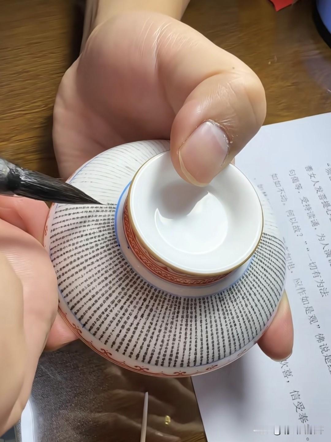 景德镇瓷器上写字的功夫,确实不是一般人能驾驭的。当地有种职业写字匠,瓷上写字苍劲有力,稳如泰山,一笔一划尽显深厚功底。 陶瓷书法不同于普通书法,它是源于窑火的艺术,难度远大于在宣纸上书写。经过火的淬炼,淡墨笔画极易失去神采,这对创作者的艺术和技法要求极高。 要求在薄如纸的瓷碗内心或者外壁上,书写千字左右的内容,稍有疏忽便功亏一篑。不得不说,景德镇瓷上写字这门功夫,真的太考验人了! 正因为如此,这门技艺已经形成了一种传承。