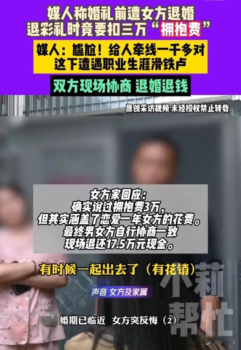 “太离谱!”河南,一男子花20万彩礼娶相亲女子,期间没碰过对方,岂料,临近婚礼,女子突然变卦,认为男子工资低太老实要求退婚,男子要求退还彩礼,对方却认为男子拍婚纱时抱过她,竟要扣3万拥抱费! 10月9日,潇湘晨报报道了一则令人匪夷所思的彩礼纠纷。 年近 30 的万小川一直没能解决婚姻大事,家里人为此十分着急,四处托人帮他介绍对象。2024 年,经一位媒人多方联络,为他介绍了名叫陈莉的姑娘。 两人在媒人的撮合下互加了联系方式,开始线上沟通。万小川觉得陈莉性格温和,相处起来很舒服;陈莉也认为万小川为人老实诚恳,值得信赖。 经过一段时间的交流,双方对彼此的印象都不错,正式确定了恋爱关系。随着感情逐渐稳定,两人在恋爱几个月后决定结婚,并在 2025 年 1 月举办了订婚宴。 订婚时,陈莉家人提出了一个要求:万小川必须支付 20 万元彩礼。万小川平时工资不高,家庭经济条件也一般,20 万元对他来说并不是一笔小数目。 但为了能顺利结婚,他和家人咬牙决定凑齐这笔彩礼。家人四处向亲戚朋友借钱,还拿出了多年的积蓄,分多次将 20 万元彩礼足额交给了陈莉。 为了表达自己的诚意,万小川还特意带着陈莉去珠宝店挑选了 “四金”。随后,双方一起敲定了婚礼日期,定在 今年11 月底。 婚礼日期确定后,万小川一家立刻投入到婚礼的准备工作中。他们先是对比了多家酒店,最终选定了一家口碑不错的婚宴场地并支付了定金。 接着又逐一通知了亲朋好友婚礼的时间和地点,邀请大家前来见证;家里的装修、喜糖采购等事宜也陆续提上日程,所有人都满心期待着婚礼的到来。 然而,就在距离婚礼还有 2 个月,所有准备工作基本就绪的时候,事情突然发生了转折。陈莉开始刻意回避万小川,不再和他见面,也很少回复消息。 没过多久,陈莉直接向万小川提出了退婚。万小川得知消息后都十分意外,他们多次主动联系陈莉,试图挽回这段感情,但陈莉态度坚决,明确表示不想和万小川结婚。 万小川既失落又无奈,只能接受退婚的事实。后来,万小川从媒人口中得知,陈莉退婚可能是嫌弃他性格太过老实,而且收入不高。 既然婚结不成,万小川便提出让陈莉全额退还之前支付的 20 万元彩礼,毕竟这笔钱是家人辛苦凑来的。 可让万小川万万没想到的是,陈莉却表示只能退还 17 万,要扣下 3 万,这让万小川又愤怒又不解。 他认为既然婚礼取消,彩礼就应该全额返还,没有扣钱的道理,多次和陈莉沟通,希望她能改变想法,但双方始终无法达成一致。 之后,媒人传来了陈莉扣钱的理由:陈莉称万小川曾在拍婚纱照时抱过她,这让她觉得自己 “吃了亏”,扣下的 3 万元是 “拥抱费”,作为这次身体接触的补偿。 万小川听到这个理由后更加气愤,他解释说,当时拍婚纱照时,摄影师为了拍出亲密自然的效果,特意指导两人拥抱。 而且在整个恋爱期间,他一直尊重陈莉,除了这次拍照时的拥抱,从未有过其他越界的身体接触,根本不存在 “吃亏” 的说法。尽管万小川反复解释,陈莉依旧坚持要扣下 3 万。 。 面对记者的采访,陈莉的家人承认了扣下 3 万元的事实,但却改变了之前 “拥抱费” 的说法。 他们表示,万小川和陈莉恋爱了将近一年,在这段时间里,陈莉为两人的相处花了不少钱,比如一起吃饭、逛街买东西等,扣下的 3 万其实是补偿陈莉在恋爱期间的开销,这样做合情合理。 对于陈莉的说法,万小川并不认可。他表示,恋爱期间两人共同消费时,大多是他主动付钱,陈莉很少花钱,就算有开销也远远达不到 3 万,而且恋爱中的正常消费不应该用彩礼来抵扣。 那么,从法律的角度该如何看待此事呢? 1、 万小川要求陈莉退还彩礼的主张是否合理? 根据《民法典婚姻家庭编司法解释(一)》第 5 条规定:双方未办理结婚登记手续,当事人请求返还按照习俗给付的彩礼的,人民法院应当予以支持。 万小川经媒人介绍与陈莉订婚,但双方未登记结婚且未共同生活,根据法律规定,万小川有权要求全额返还 20 万元彩礼。 2、 陈莉主张扣除3万“拥抱费”的要求是否合理? 根据《民法典》第 153 条规定:违背公序良俗的民事法律行为无效。 万小川的拥抱行为由摄影师指导,而且他也没有故意骚扰陈莉的意图,其行为并无不妥,陈莉将身体接触作为金钱交易对象,违反公序良俗,扣减 “拥抱费” 的约定无效。 3、 陈莉认为这3万是她在恋爱中的花费应当扣除,该说法是否合理? 根据《最高法关于审理涉彩礼纠纷案件适用法律若干问题的规定》第 3 条规定:一方为表达或者增进感情的日常消费性支出,不属于彩礼。 陈莉主张的3万元,是两人在恋爱期间的共同吃饭、购物等支出,实际上属于自愿赠与,而不应主张从彩礼中抵扣。 最后,在媒体的调解下,双方达成一致,陈莉退还了170500元。 对于此事,大家怎么看? (文中人物均为化名)