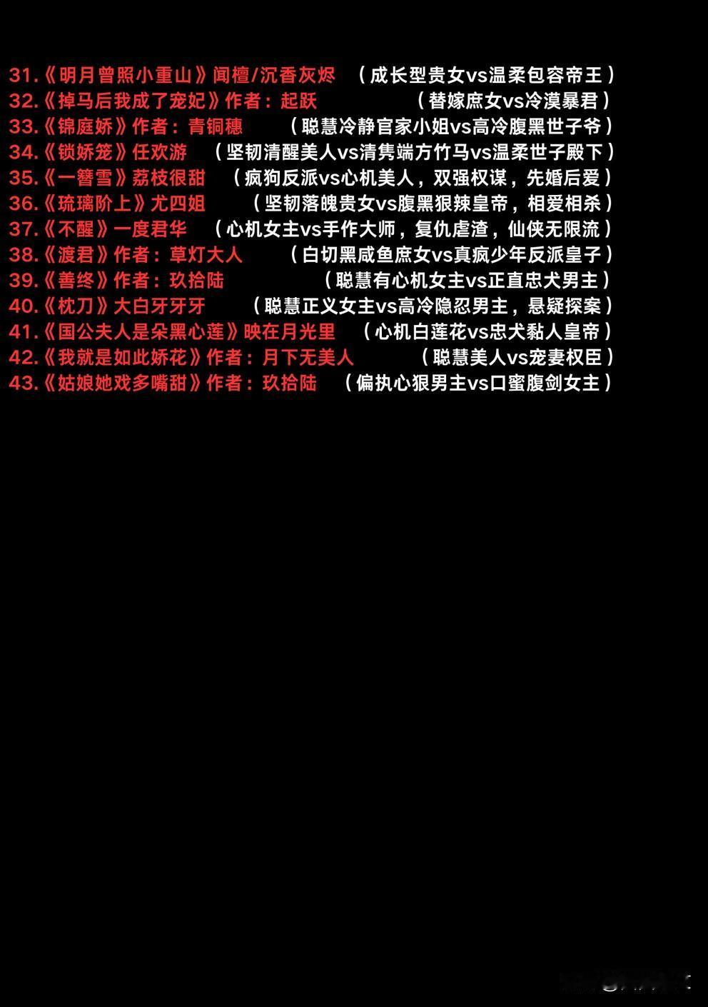 【🔥古言复仇爽文合集|43本虐渣打脸高能书单】 黑莲花女主手撕仇敌,疯批权臣为爱低头! 《谋夺凤印》心狠宠妃×多疑帝王相爱相杀 《嫡长女又美又飒》国公嫡女智斗群渣封神 《一簪雪》疯狗反派×心机美人双强权谋超带感! 替嫁庶女×暴君、寡妇×锦衣卫、女魔头×少宗主,从宅斗到朝堂,虐渣爽感拉满。《不醒》仙侠无限流复仇 《锁娇笼》竹马变修罗场,每本都让你通宵捶床! 古言虐渣爽文 古风重生复仇文 古代复仇文 古言重生文 女强权谋古言 古言重生复仇文 穿书复仇文