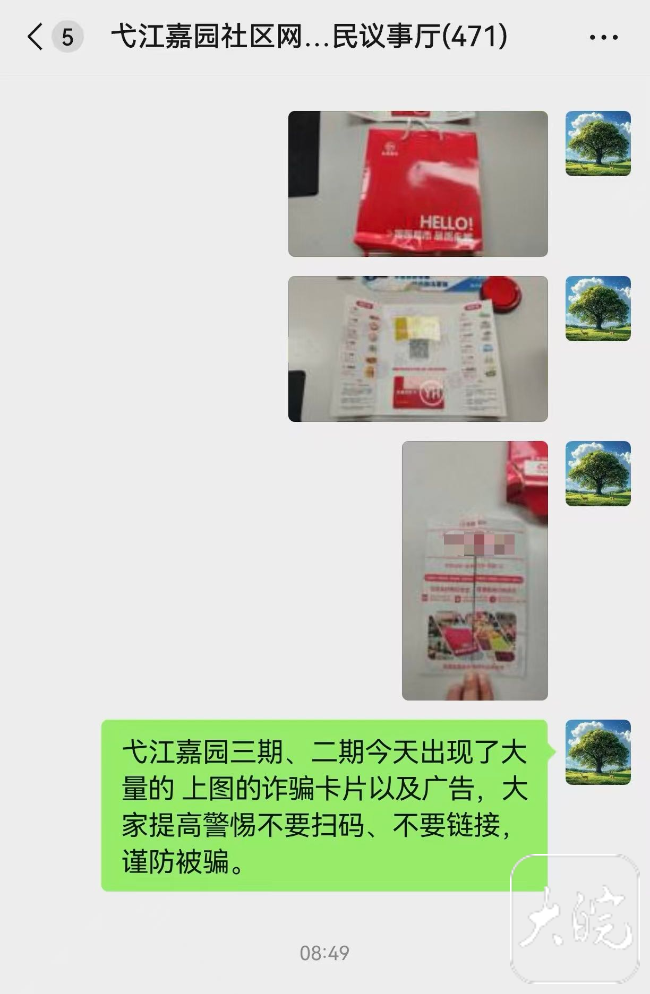 大皖新闻讯11月21日,芜湖市公安局弋江分局马塘派出所社区民警在辖区日常走访时,发现一批印有“某超市试吃卡”“某超市试用卡”字样的宣传单页。凭借反诈职业敏感,民警当场扫码核查,成功甄别出这是一起以“免费试吃试用”为噱头的新型网络诈骗,并第一时间通过“警民议事厅”平台向辖区群众发出预警,避免群众财产受损。
