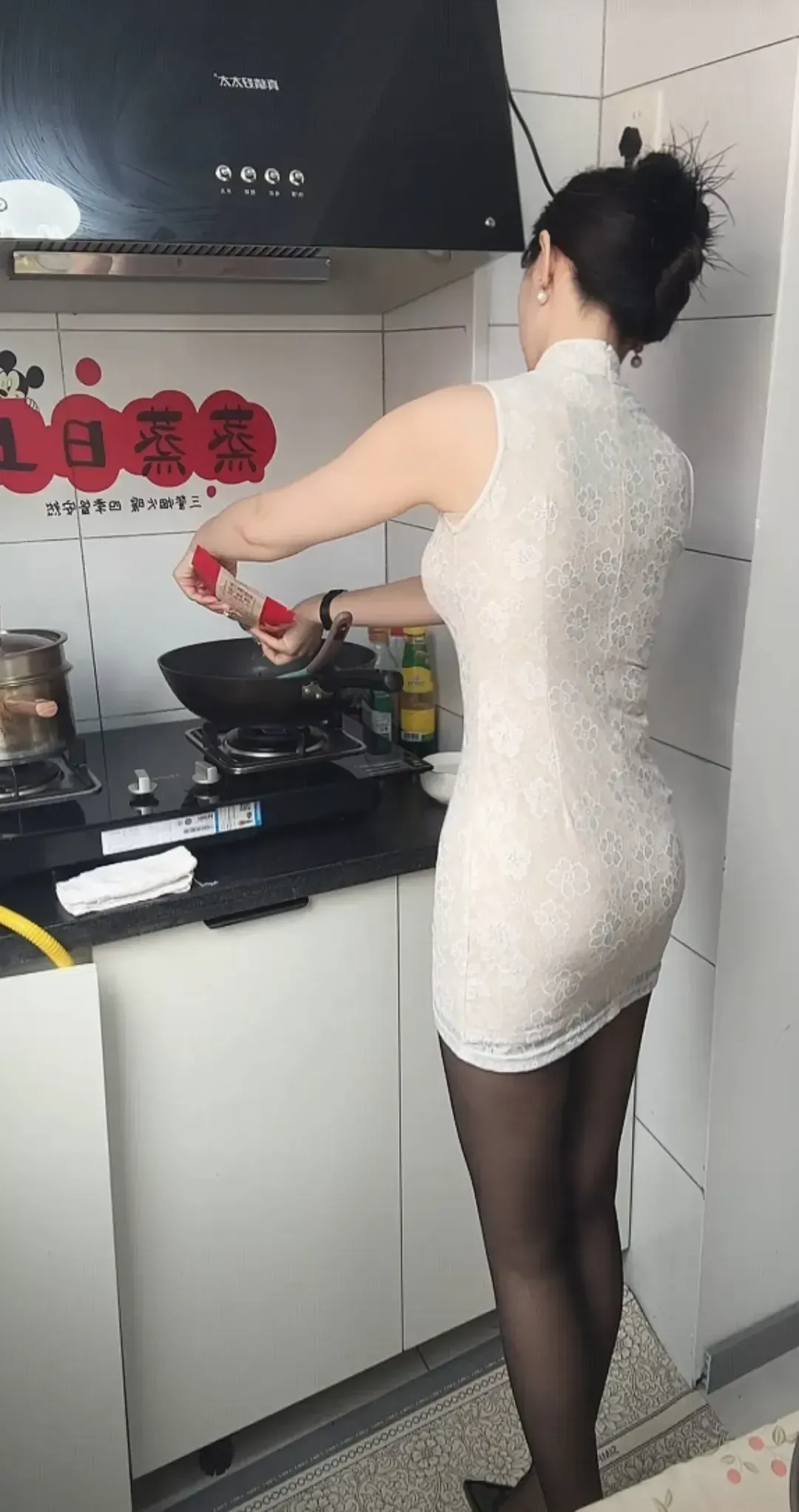 黑丝少妇穿高跟鞋在厨房颠勺,锅铲甩出残影,弹幕直接炸了。
