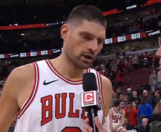 赛后,公牛球员尼古拉-武切维奇接受媒体采访,谈及今日球队的发挥,尼古拉-武切维奇打趣表示: