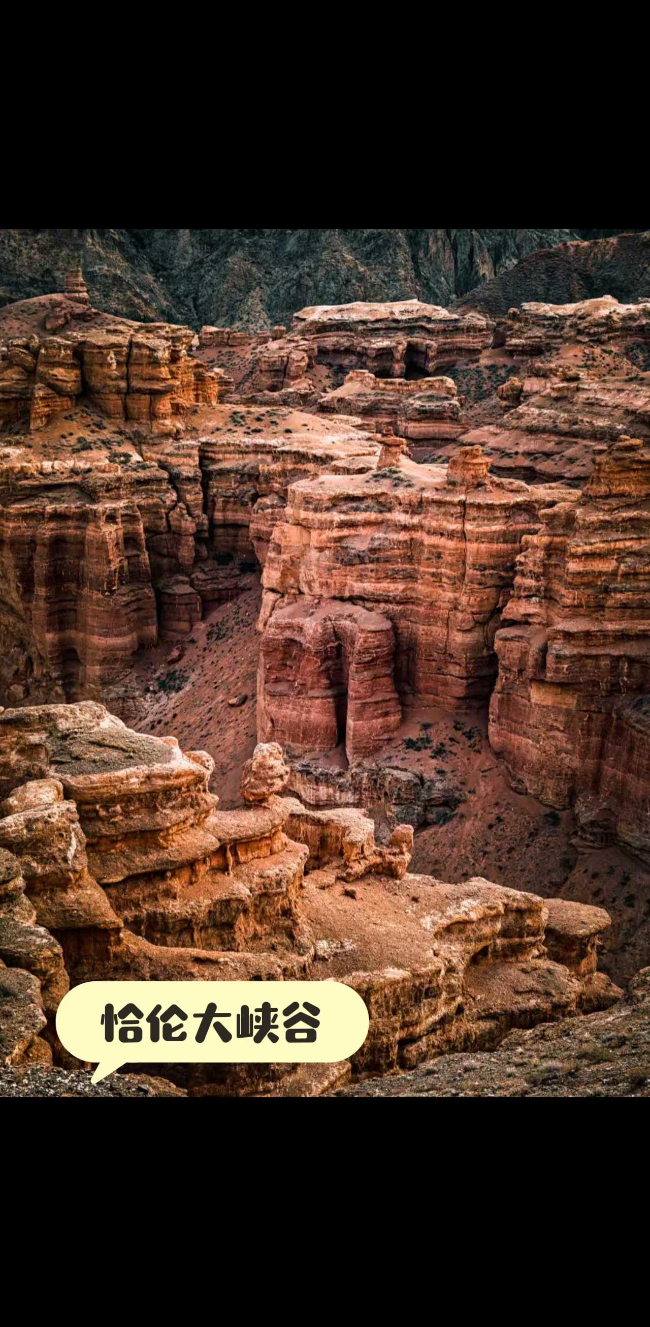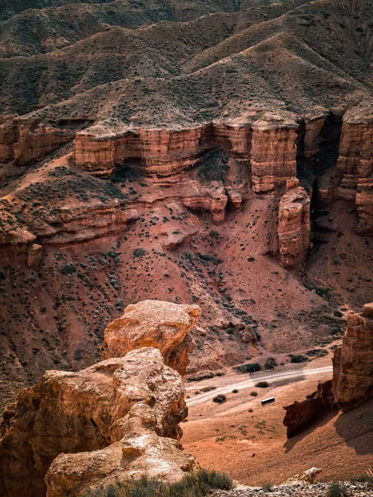 恰伦大峡谷距离哈萨克斯坦阿拉木图两小时车程,距离中国伊犁大概也就两个小时。这片土
