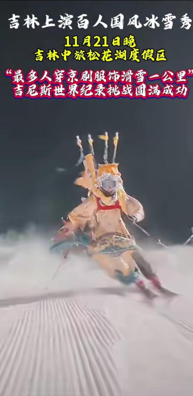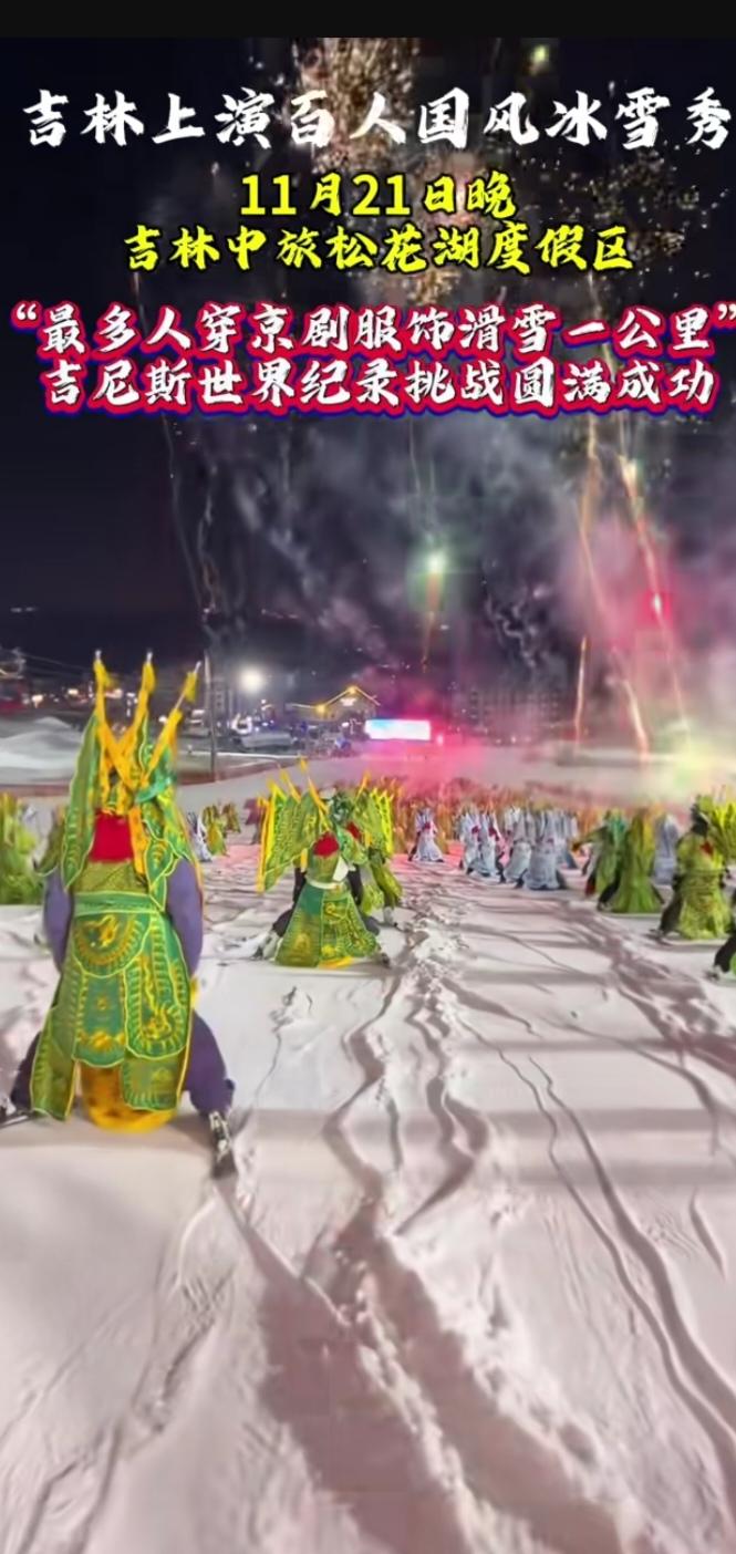 粉雪映国粹!吉林266人创纪录,国风冰雪秀燃爆新雪季 当京剧华服遇上雪域飞驰,当传统国粹碰撞潮流运动,吉林松花湖这场百人国风冰雪秀,直接把冬日浪漫拉到顶峰!11月21日晚,266名滑雪爱好者身着色彩艳丽的京剧服饰,在灯火通明的雪道上齐滑一公里,不仅创下吉尼斯世界纪录,更让全网直呼“这才是中国人的冬日浪漫”。 作为“京剧第二故乡”与“世界级粉雪胜地”,吉林这次将两大文化名片完美融合。滑雪者们头戴精致盔头,翎羽随风翻飞,红蓝黄黑的戏服在白雪映衬下格外夺目,水袖随滑行动作舒展飘逸,仿佛把京剧舞台搬到了冰雪之巅。他们或疾驰如箭,或轻盈转弯,雪板划破粉雪的瞬间,既有运动的激情澎湃,又有国粹的典雅韵味,构成一幅跨越古今的绝美画卷。 现场氛围热烈到沸腾!雪道两侧挤满了慕名而来的游客,手机快门声此起彼伏,每个人都不愿错过这震撼瞬间。当滑行队伍整齐划过终点线时,漫天烟花骤然绽放,白的雪、艳的衣、亮的灯、美的烟花交相辉映,欢呼声、赞叹声冲破夜空。参与者们尽管脸颊冻得通红,眼中却满是兴奋与自豪,不少人表示:“能以这种方式传承文化、挑战纪录,再冷再累都值得!” 这场创意盛宴不仅点燃了滑雪爱好者的热情,更让传统文化焕发新生。它用年轻人喜爱的方式,让京剧走出剧场,让冰雪运动更有文化底蕴,成功推动吉林“冷资源”变身“热经济”。这个雪季,不妨奔赴松花湖,说不定就能偶遇“京剧滑雪侠”,亲身感受这场古今碰撞的视觉狂欢!吉林松花湖滑雪 冰雪游吉林 松花湖冰雪季