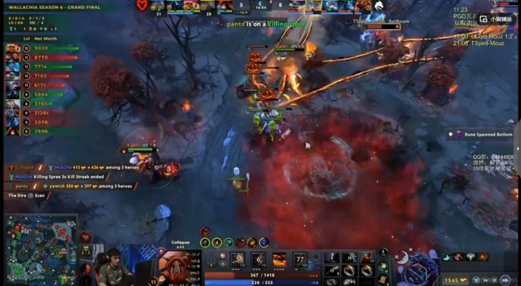 [24分钟]下路MidOne拉席克被Larl大鱼+Collapse斧王直接秒了!Yamich海民留人自己吃了吹风,Kaori术士开大也没留住人!MOUZ被Spirit抱团逼回高地上!随后中路团战Spirit打出1换2,小水晶巨魔强行追panto杰奇洛结果自己吃到Collapse斧王刃甲吼白给了!Spirit抱团强行留人,买活的yamich海民也阵亡,BOOM亚巴顿也就打了个1换1!这波打完几乎是Spirit的一波2换6完胜!Spirit经济反超4K了!