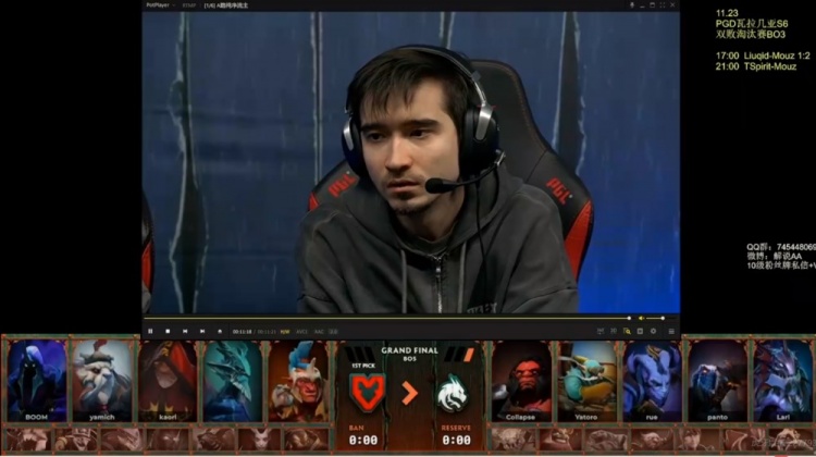夜魇Spirit:Larl大鱼人、panto杰奇洛、rue力丸、Yatoro矮人直升机、Collapse斧王