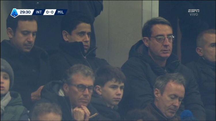 巴黎主席纳赛尔现身看台,现场观战米兰德比