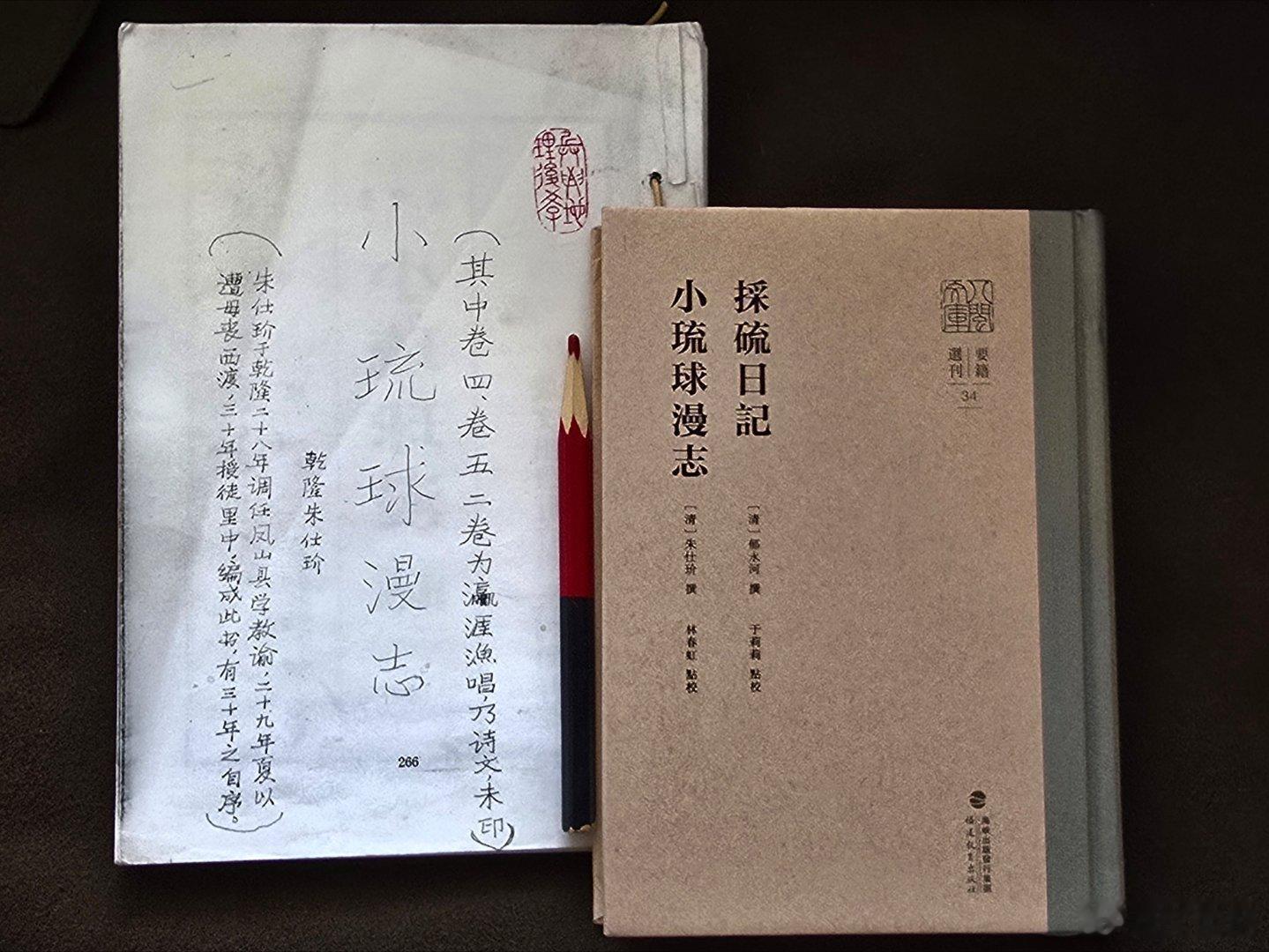 我在院校讲方志与军事地理关系课时,曾引述清朱仕玠《小琉球漫志》中海中“经路”之论,以及古人航海经路计算依据。近日不经意间竟得疑似《小琉球漫志》点校者林春虹复印台湾刊刻底本所作的笔记。其书页上有点校者据哥伦比亚大学图书馆藏本与台湾刊本的文字异同笔记,字迹工整,足见治学认真。 我在想这册《小琉球漫志》的校勘笔记何以辗转流入我手,是提示我注意和继续做些什么?