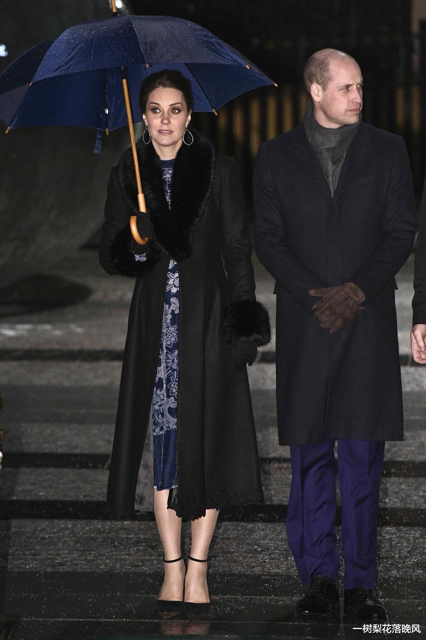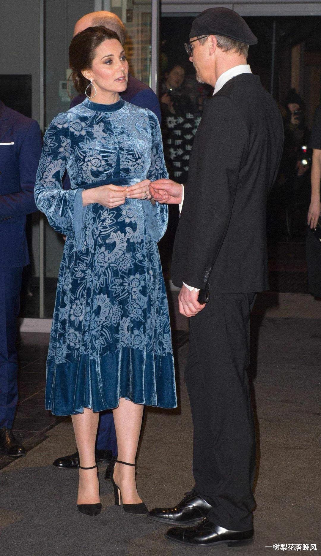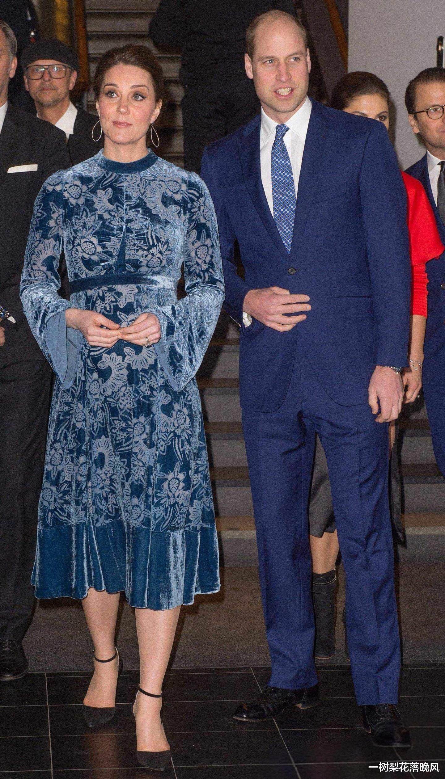 凯特王妃的蓝丝绒连衣裙,每帧都把王室夫妇的模范贵气地揉和一起