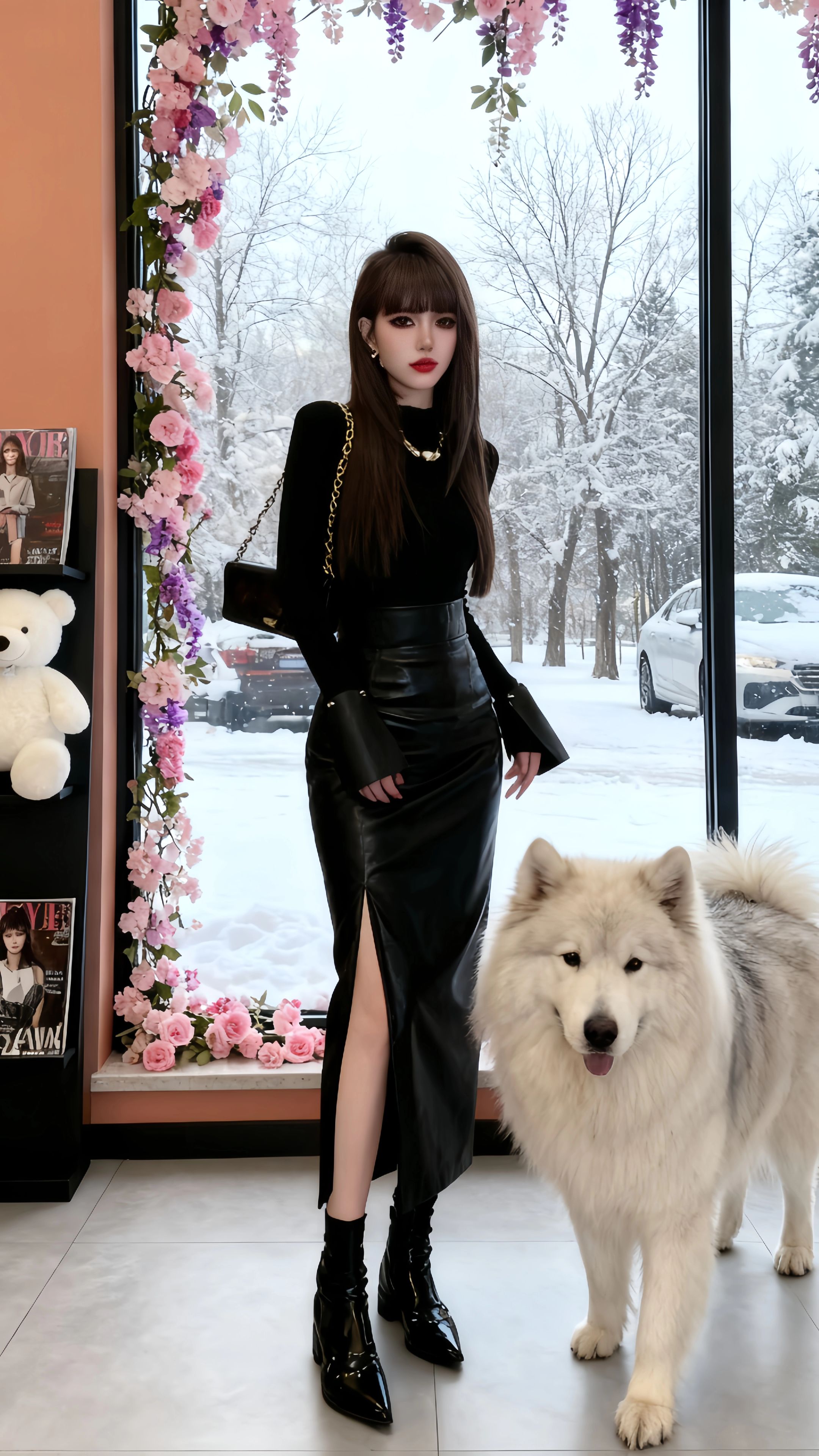 新款纯欲风穿搭,辣妹显瘦打底衫上衣➕高腰半身皮裙套装