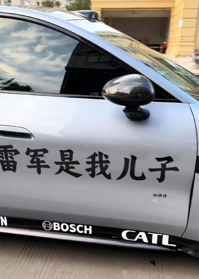 笑死,有网友说把 “雷军是我儿子(小字:的偶像)” 涂到小米SU7的车身~