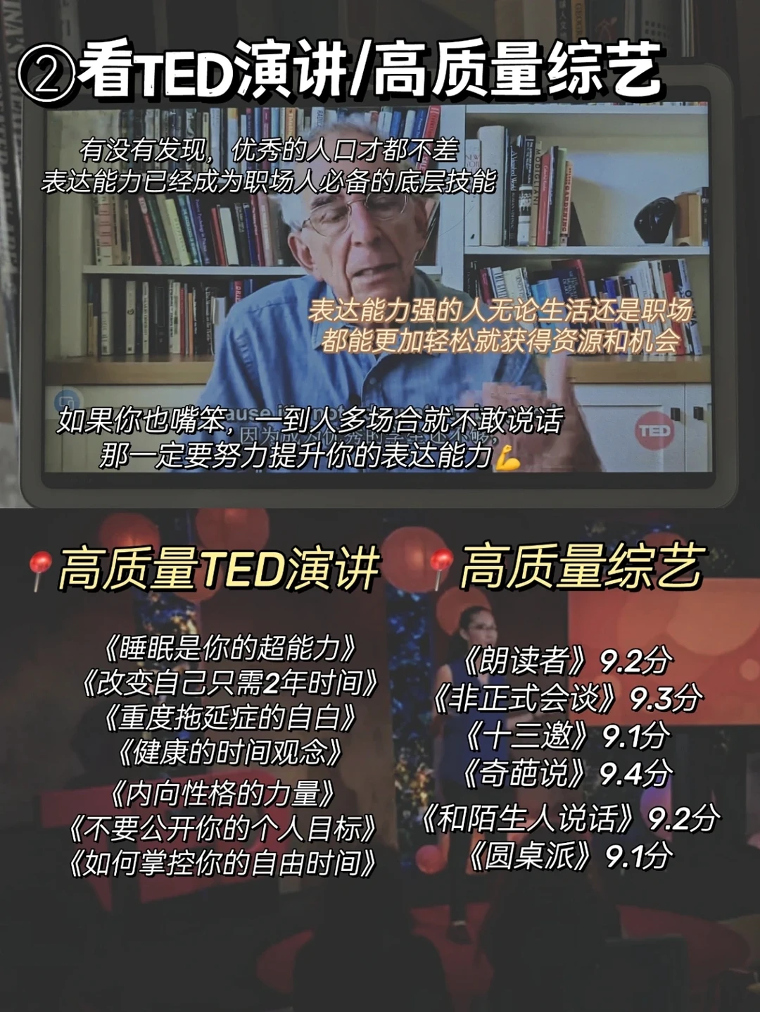 2⃣ 看TED演讲/综艺