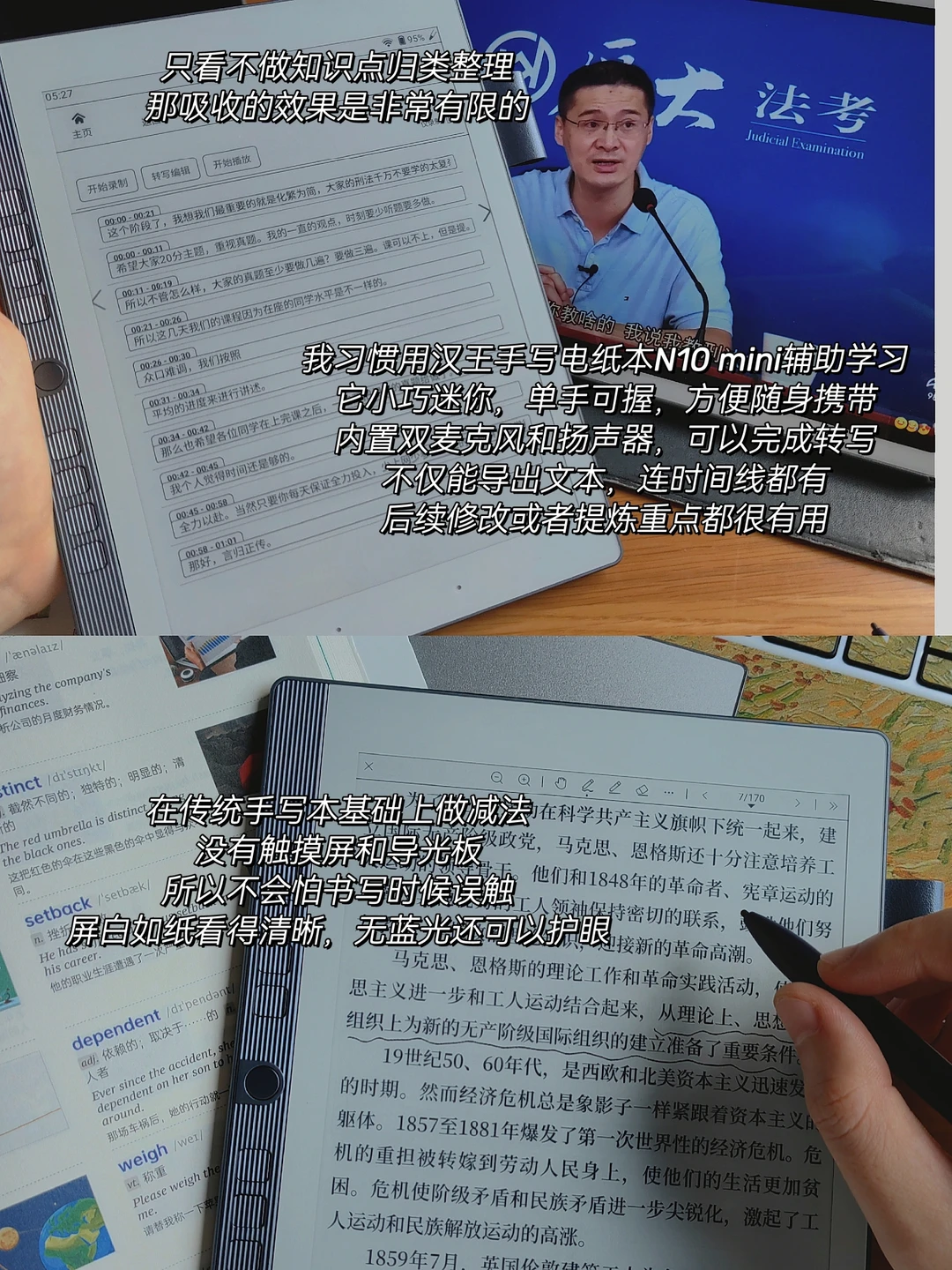 ✅ 我习惯用汉王手写电纸本N10 mini 辅助学习。它小巧迷你,单手可握,方便随身携带。没有触摸屏和导光板,所以不会怕书写时候误触。横竖屏智能切换,分屏做笔记就很方便,还有手写转文字功能,OCR 功能还是无限次免费用的。大大提升了我的学习效率💪