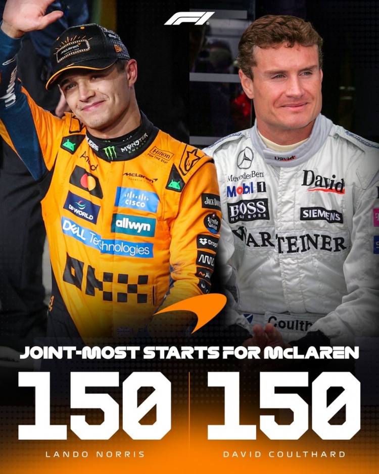 虽然本站比赛诺里斯没有成绩,但据统计,这是他为迈凯伦车队出战的第150场大奖赛,追平大卫·库特哈德,并列迈凯伦车队队史出战次数第一。