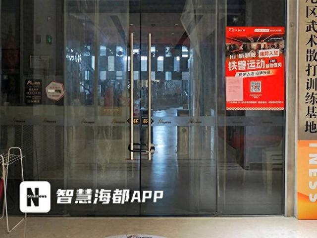 记者在现场看到,这家健身房门上贴着暂停营业的公告,透过玻璃门望去,前台空无一人,场内还有许多健身器材。