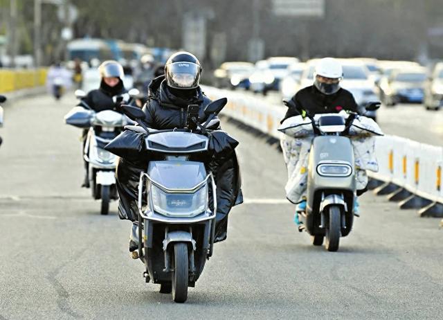 11月24日,在太原市长风桥上,出行的市民们戴上口罩、裹紧羽绒服,电动车骑手更是包裹得严严实实。据气象部门预报,此次降温幅度较大,市民需注意保暖,外出做好防风措施。山西晚报·山河+记者胡续光摄