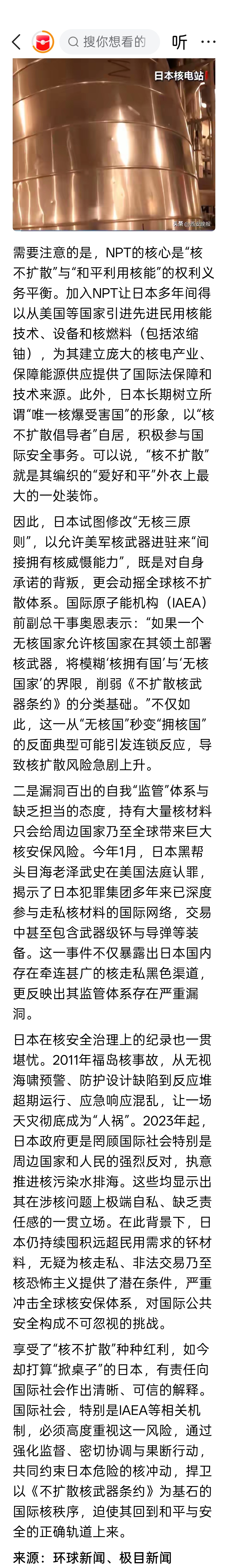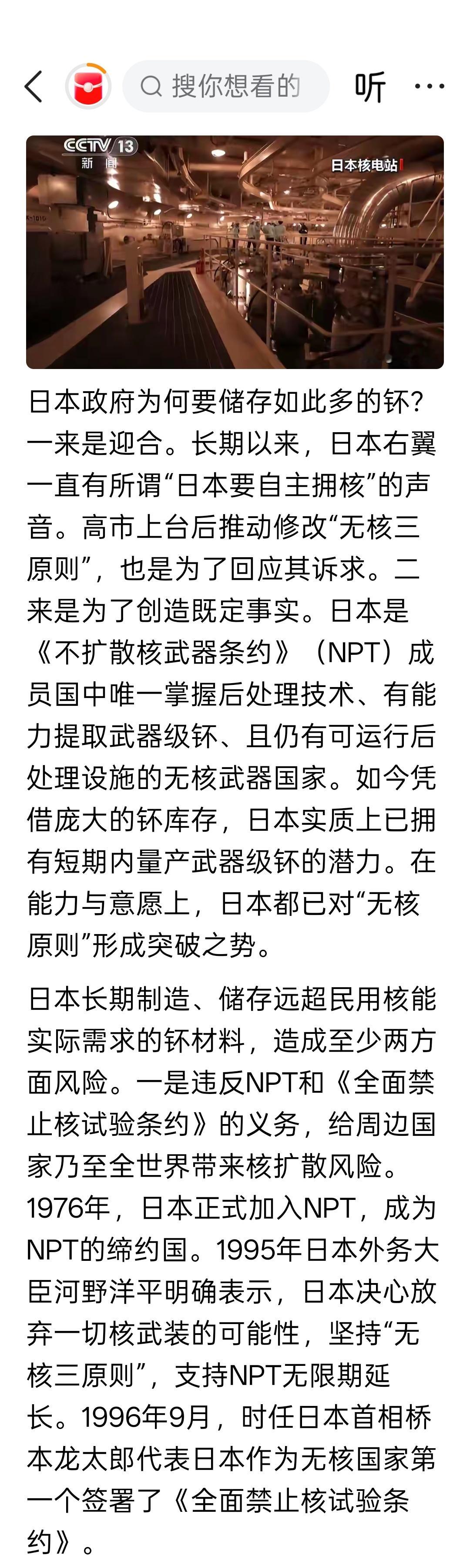 日本持续囤积远超民用需求钚材料,约47吨,总量足以制造6000枚核弹。一旦发生战争,日本会不会立马制造核武器?