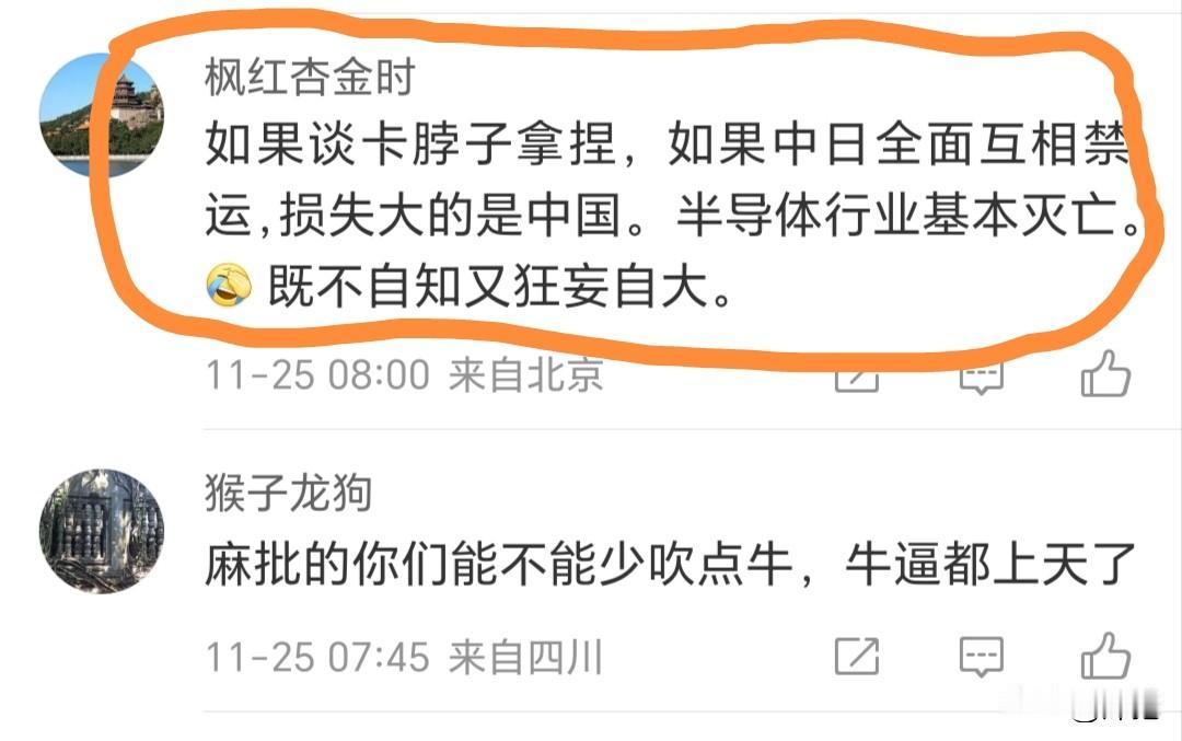 日本曾经用高纯度氟化氢这个杀手锏搞崩了韩国,现在有人提出日本会不会用一些科技手段来反制中国。只能说你对中国的产业体量没有概念。HF能卡死韩国,是因为韩国没有工业缓冲区,且电子业是韩国经济的重头。论对中国的围堵和限制,日本的这点手段赶不上美国一根。 再说下日本引以为傲的光刻胶:光刻胶前体日本企业也完全依赖中国,虽然极紫外光刻胶在中国以外市场是日本企业几乎垄断,但这些日本企业生产极紫外光刻胶的上游原材料却受制于中国,所以22年日本要参与小院高墙芯片联盟时候很多日本企业反对,也不只是因为中国市场,而是知道中国报复的话自己受不了。 很多人还是太低估中国在全球供应链中地位了,主要是中国比较低调,另外以前毕竟从经贸全球化中受益最多,因此还是想尽可能维持,所以手里有牌不仅不打而且连宣传也不宣传避免吓住别人,但这不等于真到掀桌子时刻这些不会用。中日关系 日本科技还强吗