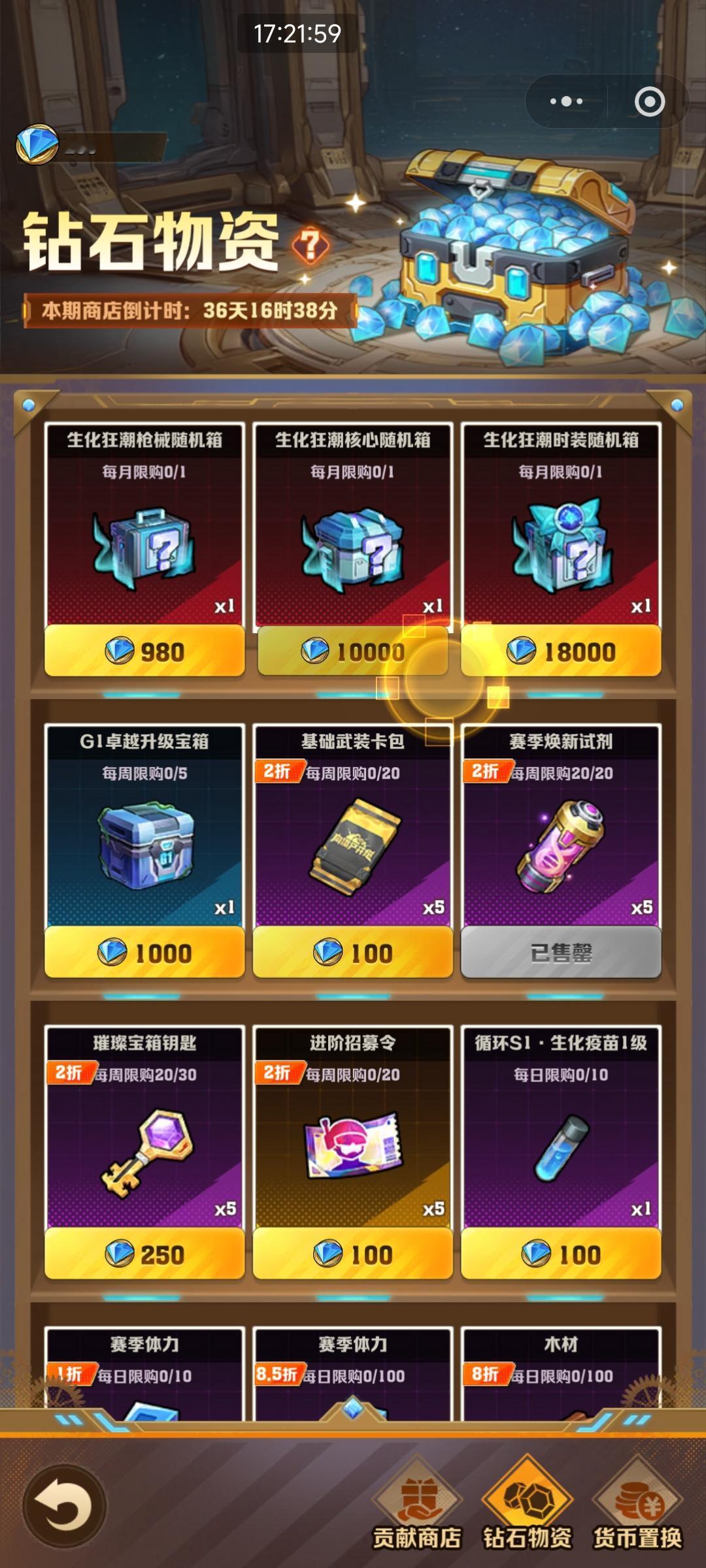 向僵尸开炮 我把所有赛季钻石全部换成璀璨钥匙,抽赛季宝箱。 总共420璀璨钥匙抽到二个基因皮肤和一个时空裂痕核心,三个红色宝石,十二个黄色宝石。紫色蓝色白色宝石数百。 联盟里的一个小伙伴自认脸黑,稳稳的屯赛季钻石换核心换皮肤,从赛季开始到现在只换了一个皮肤,核心还差两千多钻石。 同样的赛季钻石,因为他不敢拼一把,比我少了一个皮肤和数百宝石。 要知道一个皮肤就价值18000赛季钻石,还有拿数百宝石的资源,差距太大了!