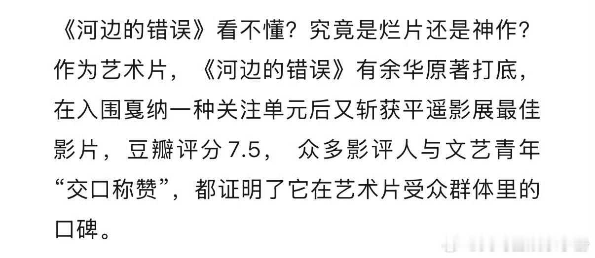 网友热议:朱一龙《河边的错误》属于剧情片还是文艺片还是艺术片呢?