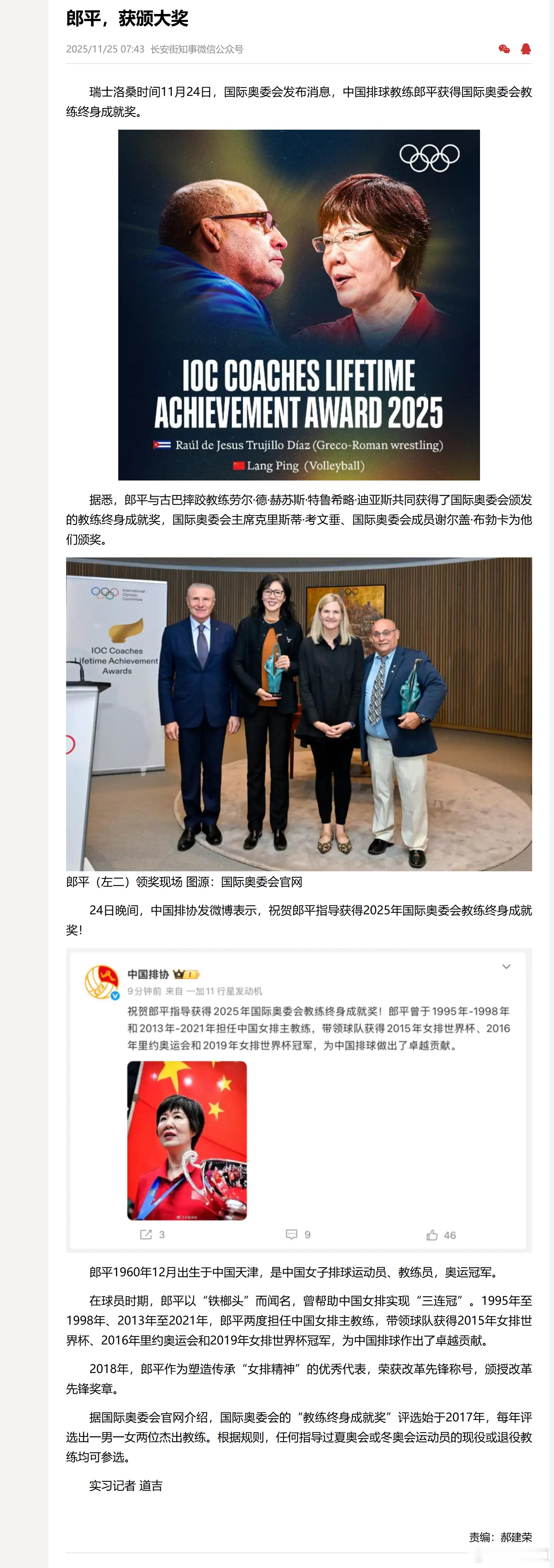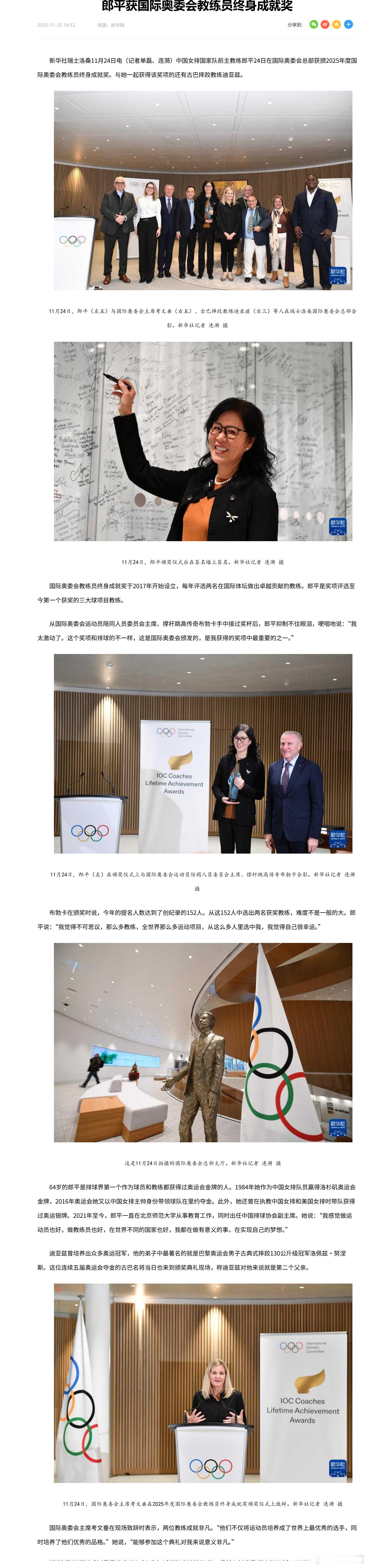 包括新华社、中新网、半月谈、南方日报都报道了郎导获国际奥委会教练终身成就奖的“喜讯”,有面!