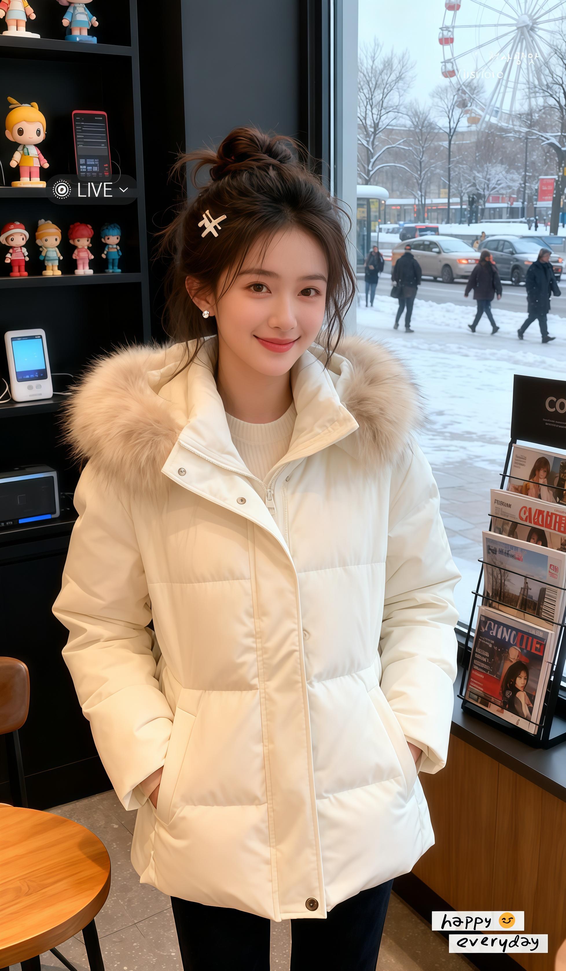 宝子们!雪天在咖啡店被夸爆的穿搭来啦~这件米白色棉服真的把温柔感拉满!大毛领软乎乎的超治愈,衬得脸巨小,收腰设计还能显腰线,里面搭个米白针织衫,简约又高级~ 窗外飘着雪,店里暖烘烘的,双手插兜站着都像韩剧画面,这种又暖又美的冬日穿搭谁能不爱!你们冬天是不是也缺一件这样的“氛围神器”~