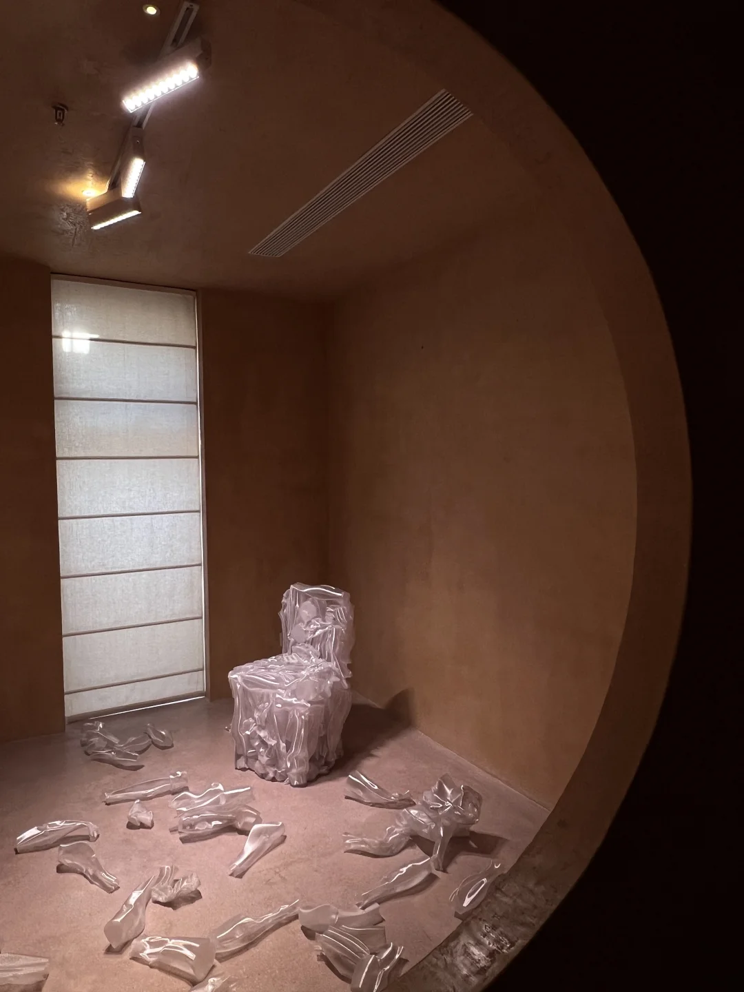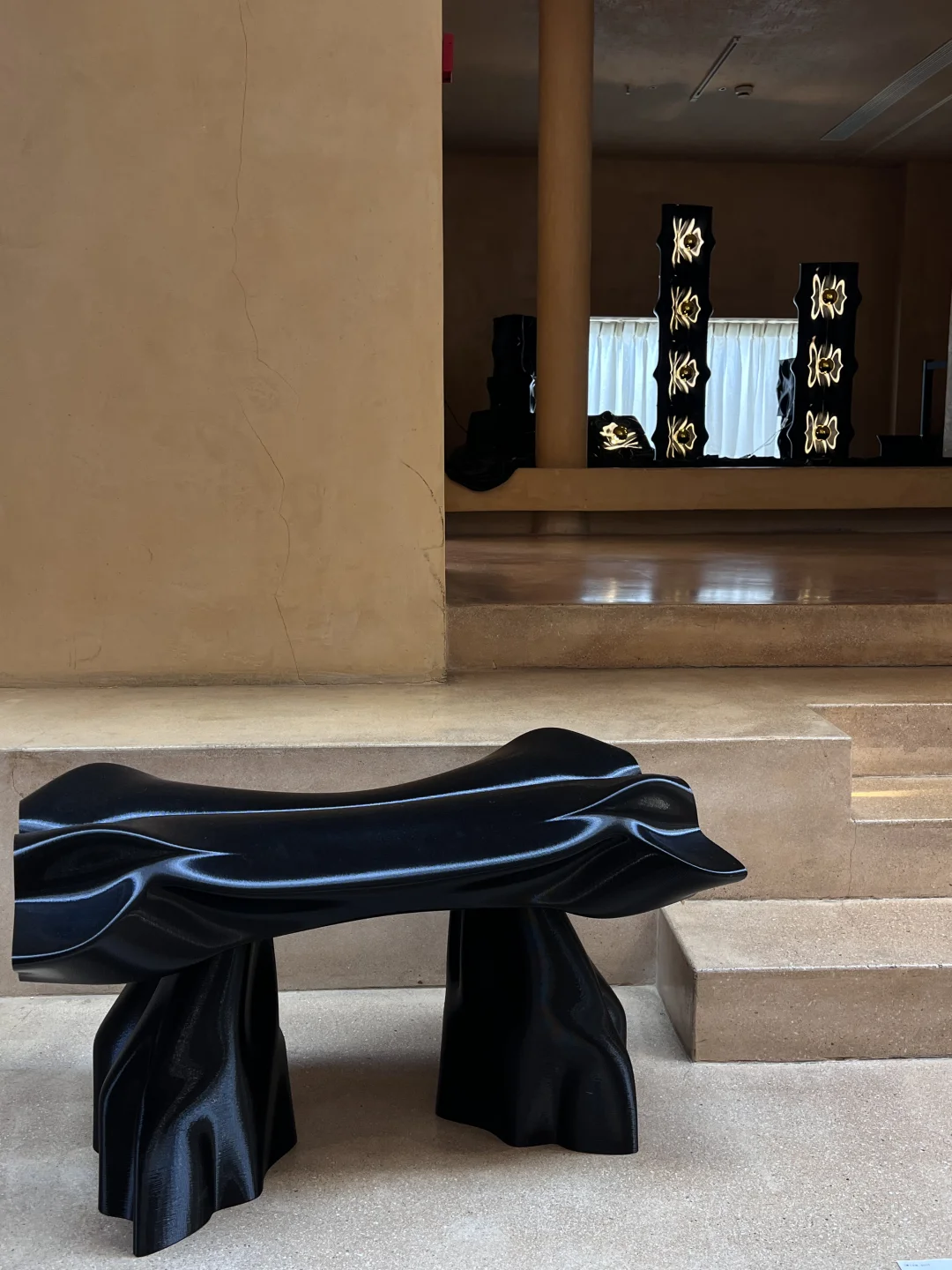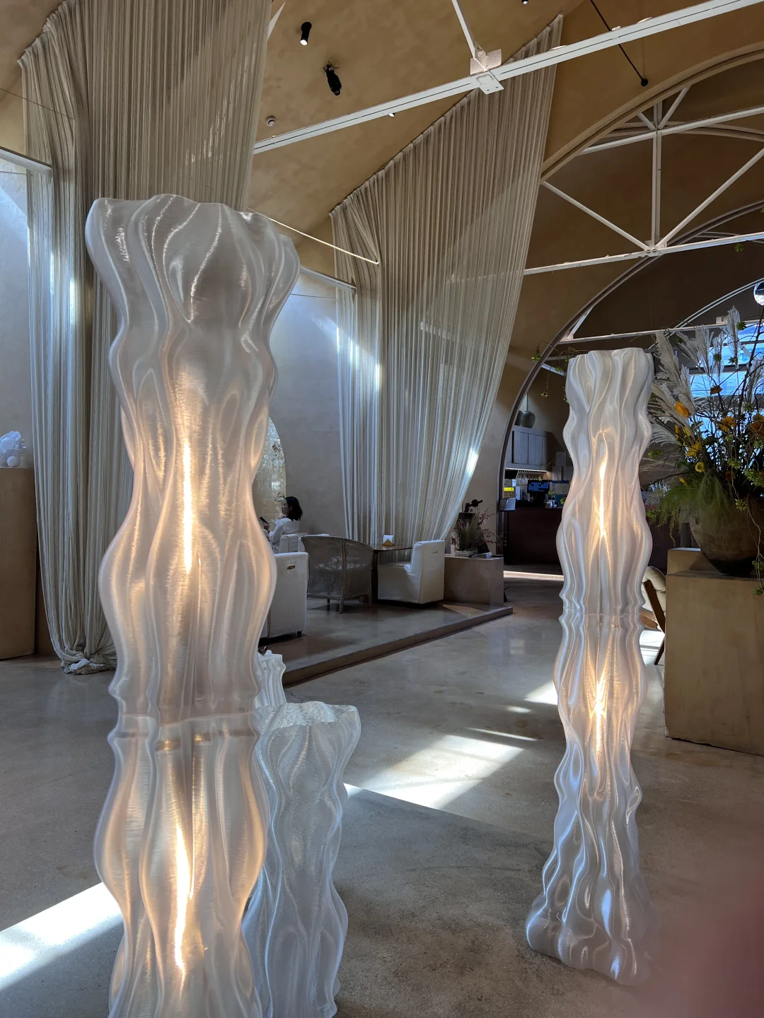 与场地空间的裸色和圆润造型很契合