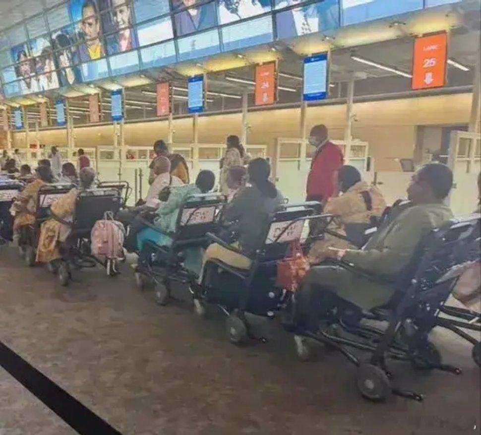 这是在世界各个国家各个机场拍摄的画面画面中这这坐轮椅准备登机的都是印度人这些印度人集体坐轮椅登机,不是他们身体有问题,而是他们脑子里有小聪明懂得钻空子。印度人发现,在机场坐轮椅有优先入机,有特别的机上服务。连餐饮都优先。还有乘务人员推著。都不用自己走路,也不用给小费。另外一个重要原因是海关基本不查携带品。所以他们集体这样干。这种小聪明只是一时之乐,很快将会把印度整个国家的信誉消耗掉。以后那些身体真正有问题的印度人出行,将会享受不到这种便利。