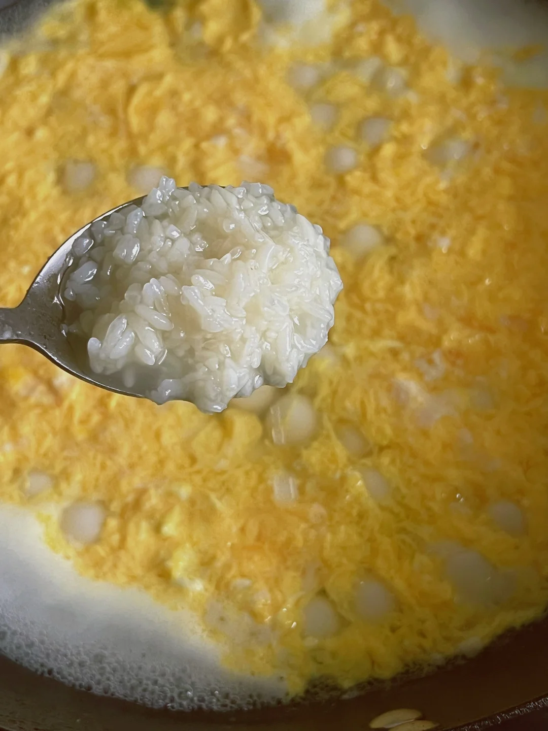 2️⃣锅中水开倒入小圆子,煮至小圆子浮起,加入水淀粉,再次煮开,淋入打散的鸡蛋液