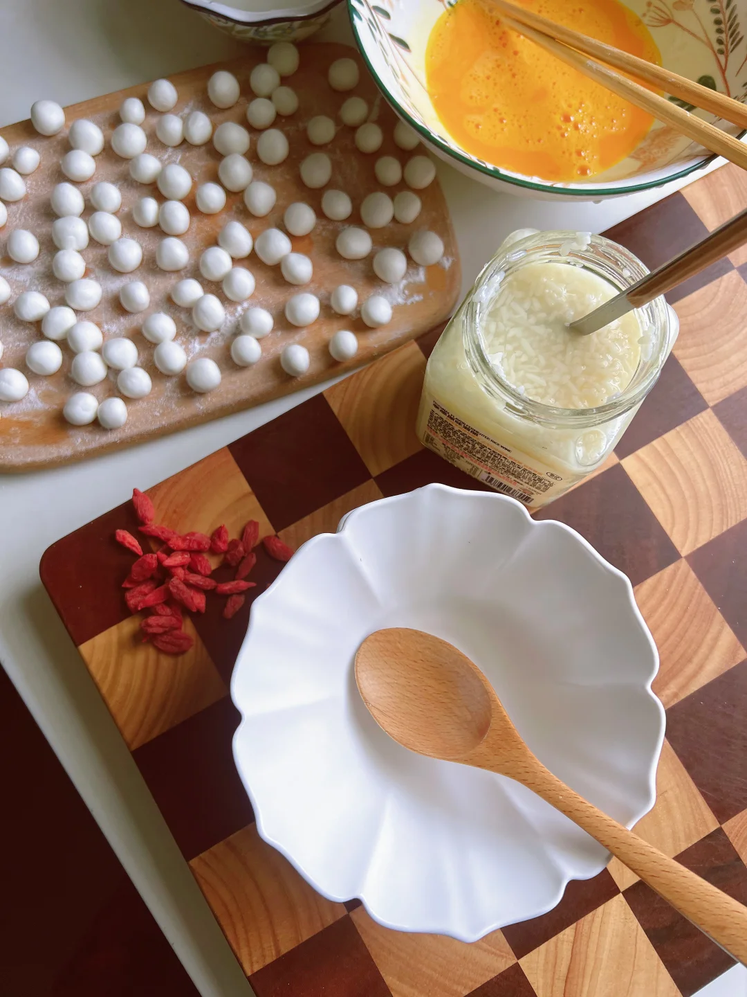 2️⃣最后加入甜酒酿和枸杞,煮沸搅拌均匀即可