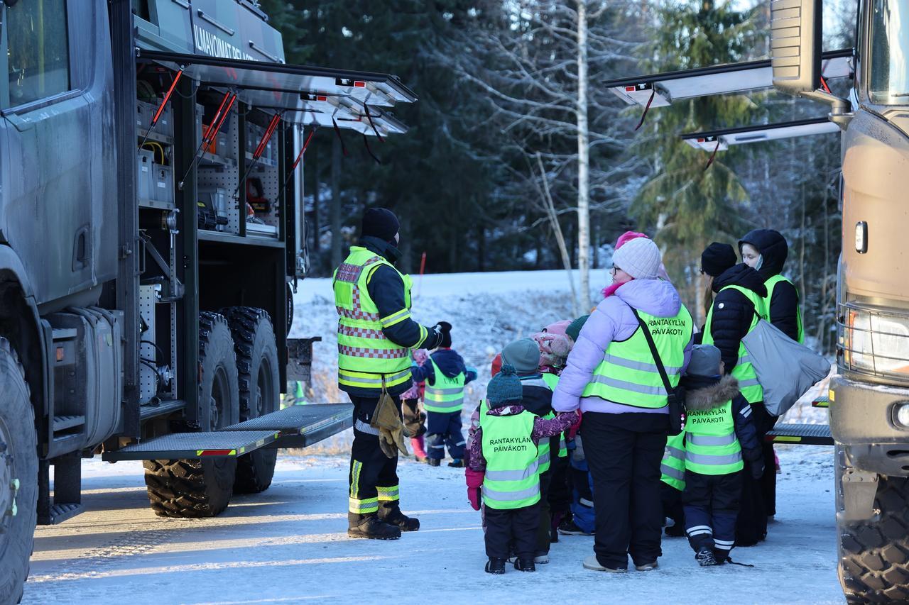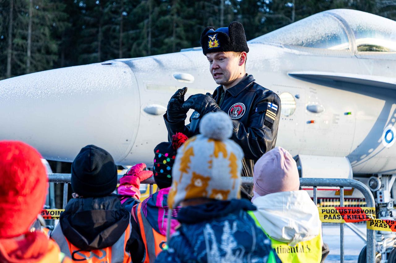 11月25日,芬兰空军组织当地幼儿园和中小学生参观位于希罗拉的“迫近野外演习”,