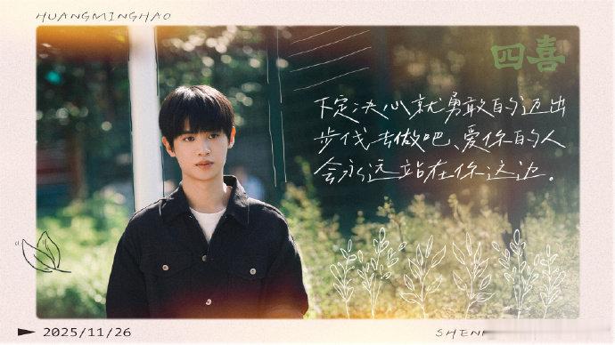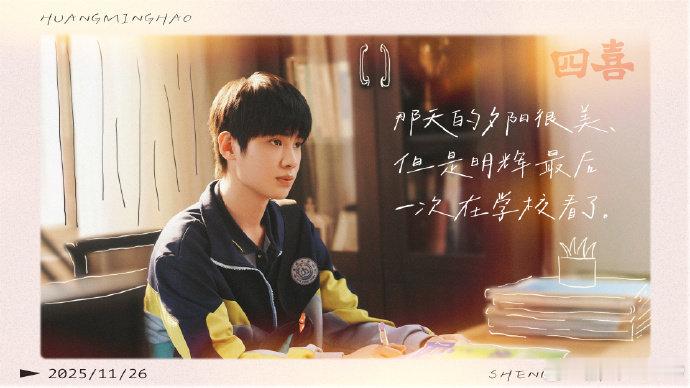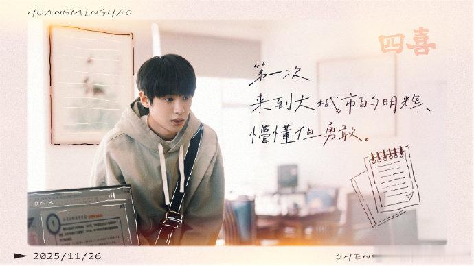 黄明昊四喜收官小作文 终于还是等到《四喜》收官的这一天了,黄明昊发小作文告别沈明辉。始终感谢观众们能接受这个不完美的角色,未来也会带着沈明辉给我的这份力量踏实走下去去遇见新的角色。约好了,我们下一个故事继续相见吧