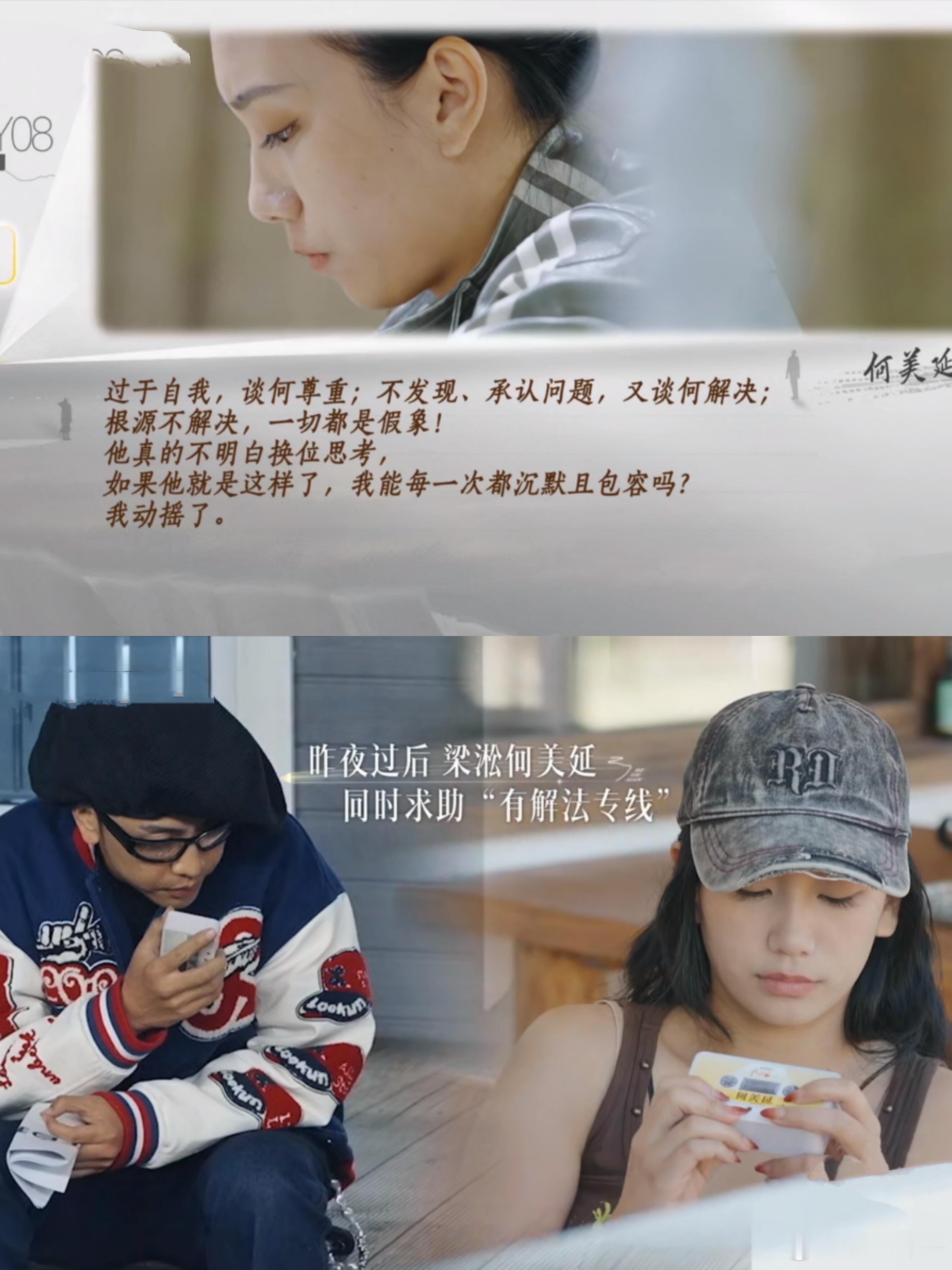 感情的问题不是说一句分开就能解决的看完《再见爱人》,我再也不纠结他们这两对儿,到底是谁对谁错,该不该分手或离婚之类的问题了。因为,他们的现状都是命运最好的安排。何美延因为头巾事件,感觉到了伤害,整个人陷入自我怀疑。她说的每句话都是对的,既然梁淞口口声声说把自己开心当成人生的至高追求,为什么不愿意在她被吹了一脸风沙的时候,借给她头巾呢?答案只能是梁淞没那么爱。而何美延又太爱了。她把自我价值全部建立在梁淞身上,于是她在感觉不到梁淞的爱后崩溃了,好像人生失去方向。还有李施嬅看起来比何美延清醒独立,但是她在内心深处的某个地方也很依赖车崇健。在预告里,李施嬅说他们分分合合二十多次(不知道没啥节目没播),但都这样了李施嬅还狠不下心离开,一定是有她的原因。留心就会发现,李施嬅一直强调车崇健是绝对不会背叛她的人。好像李施嬅只要想到这个世界上有一个人不会背叛自己,就能生出满满的安全感。感情最大的问题就在于此,它不是简单的分不分,离不离就能解决的。对于看客来说,我们可以很轻易的说出,你分手啊,这个人他不值得。可身在其中的时候,真的很难割舍掉那一份联系。那是我们给自己寻觅的避风港,是我们逃避内心深处的恐惧、羞耻和自卑的好地方。给了我们虚假的“安全感”。所以,即使有些关系我们旁观者看着要气死了,恨不得替他们分手,可是当事人依旧沉浸其中不可自拔。因为他们无法面对失去这段关系后的失控感和空虚感,宁可继续在关系里“受罪”。积极心理学里有个很绝妙的观点是这样的:No one is coming,没有人会来。在我们的生命里,没有第二个人来,没有人会踏着七彩祥云来救你,能救自己的只有自己。生而孤独是一种常态,亲密关系也是一场独自旅行。伴侣与我们而言只是一面折射自己的镜子。就像美延不会爱上车崇健,李施嬅也不会爱上梁淞。每一段关系都展示了自己没有完成的课题。在亲密关系里照见自己,看到自己内心深处的伤口,然后慢慢探索,从内心深处长出爱自己的力量后,这段关系是分是合自然就有答案了。所以,当我们也为一段关系痛苦的时候,先找一找自己的伤痛在哪里,然后面对它治愈它,因为只有自己能拯救自己。这个过程或许比那段关系还让人痛苦,但熬过去之后,就一定会迎来新生。再见爱人5|