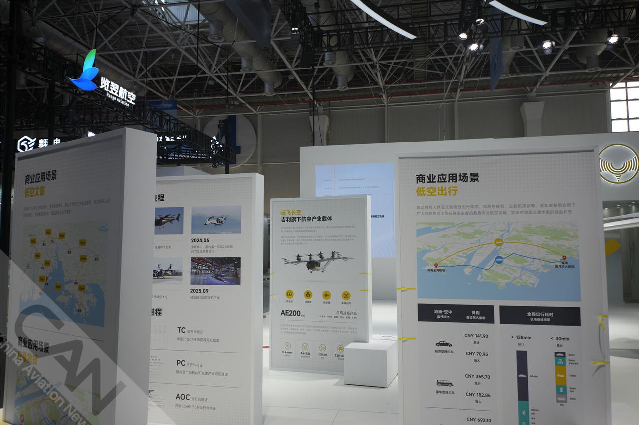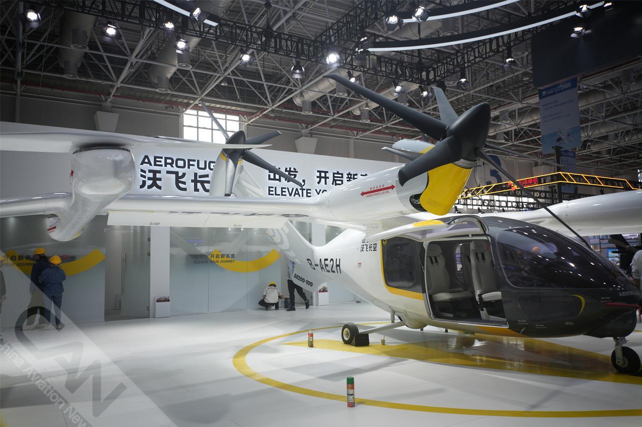 沃飞长空在2025年亚洲通航展上展出一架AE200-100电动垂直起降飞行器。(