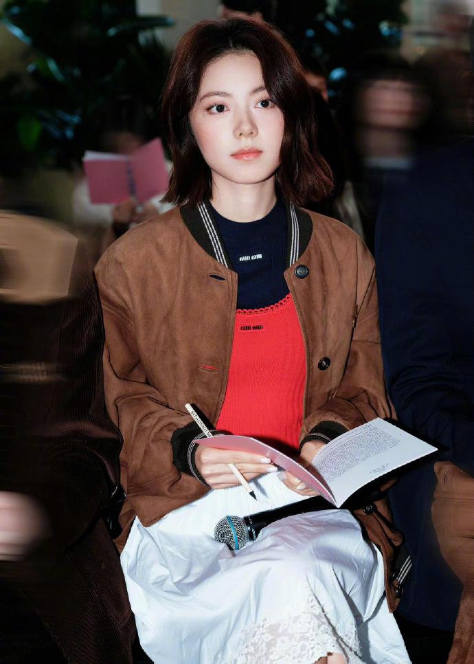 谁懂!赵今麦MiuMiu文学俱乐部造型封神✨ 把“富家千金”的贵气慵懒与“高智学姐”的清冷书卷气焊在身上,柔而不腻、甜而不娇,每一处细节都踩在审美点上。没有过度堆砌的奢华,只有适配文学主题的精致氛围感,现场粉丝直拍生图更绝——灵动眉眼自带光泽感,松弛体态比精修图更有生命力,完美诠释少女与优雅的双向奔赴,这才是适配高奢的氛围感天花板!赵今麦 赵今麦写真 赵今麦穿搭