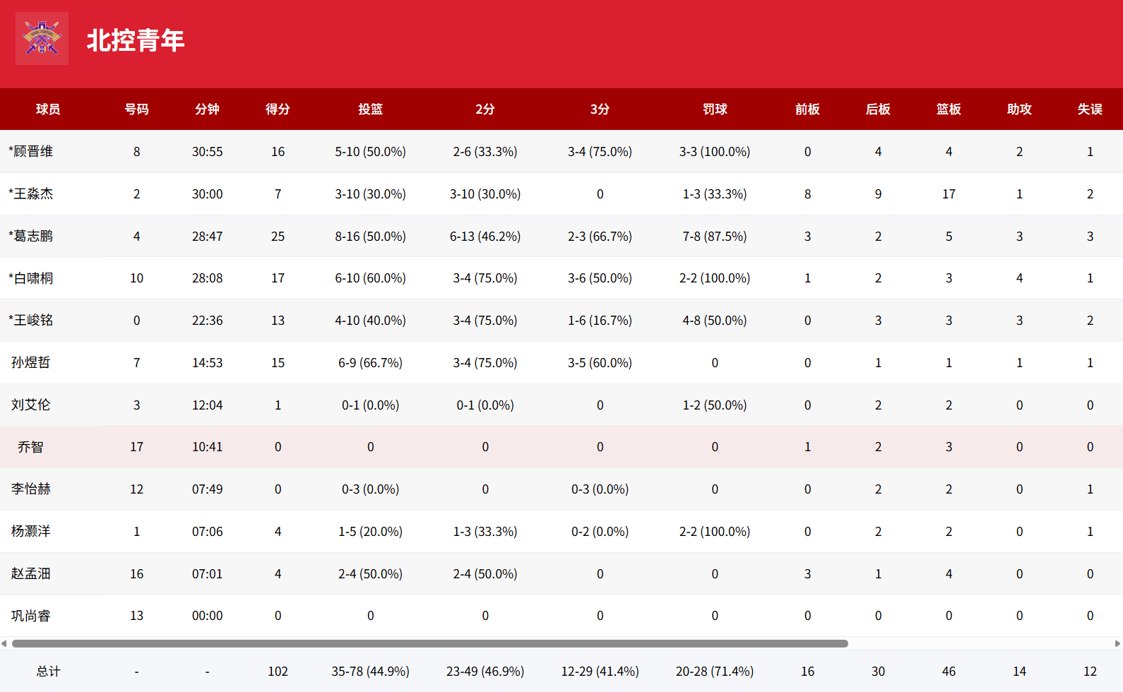 北控U19男篮:葛志鹏25分、白啸桐17分、顾晋维16分