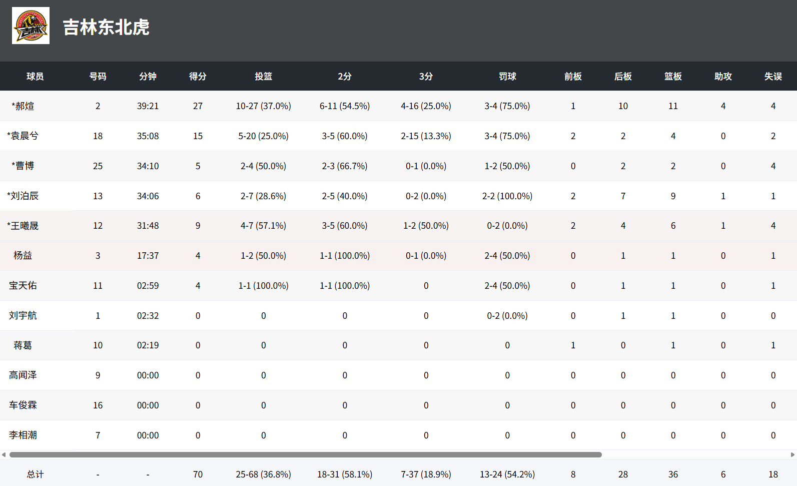 吉林U19男篮:郝煊27分、袁晨兮15分、王曦晟9分