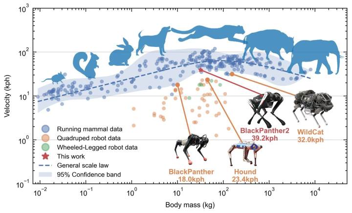 相较于自然界奔跑哺乳动物(如野猫32.0kph、猎犬23.4kph),“黑豹Ⅱ”当前39.2kph(13.2m/s)的速度已处于领先水平,而其终极目标是挑战33m/s(120km/h)的仿生生物速度极限,让机器人在未来具备远超自然界的机动能力。这种“以技术突破自然限制”的定位,正是“超物种”概念的核心内涵。