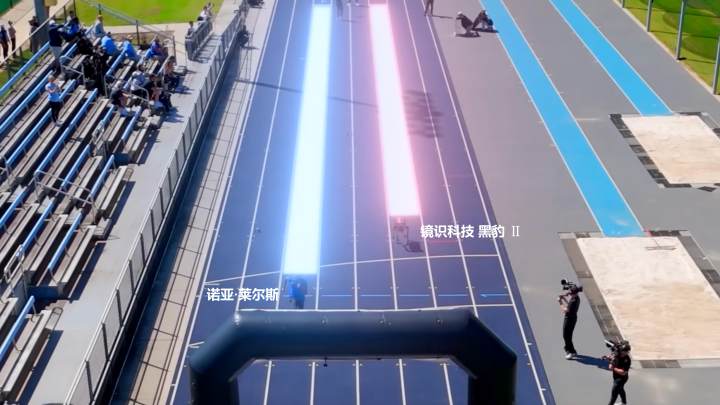 在这场跨越时代的百米对决中,巴黎奥运冠军、“博尔特接班人”诺亚·莱尔斯与来自中国的三台机器人同场竞技。其中,被誉为“世界最快机器人”的黑豹Ⅱ,虽然在终点前以毫厘之差惜败,但在冲刺的最后十几米中,它曾疯狂逼近莱尔斯,几乎上演一场史诗级的逆转。