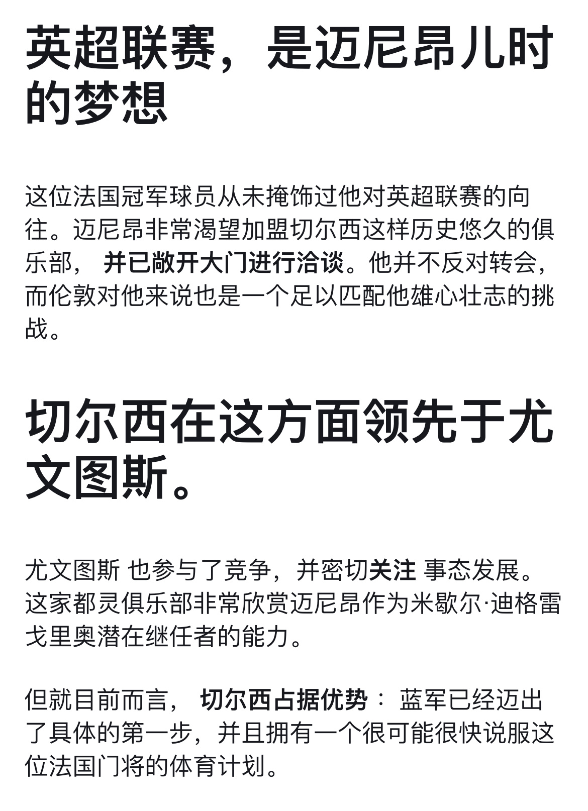 Sacha Tavoleiri:蓝军已经在幕后重启迈尼昂行动🧤- 约根森正在被考虑替换- 切尔西在得知迈尼昂无意续约后重启联系- 迈尼昂梦想英超联赛- 切尔西领先尤文图斯,并且已经准备了提案切尔西