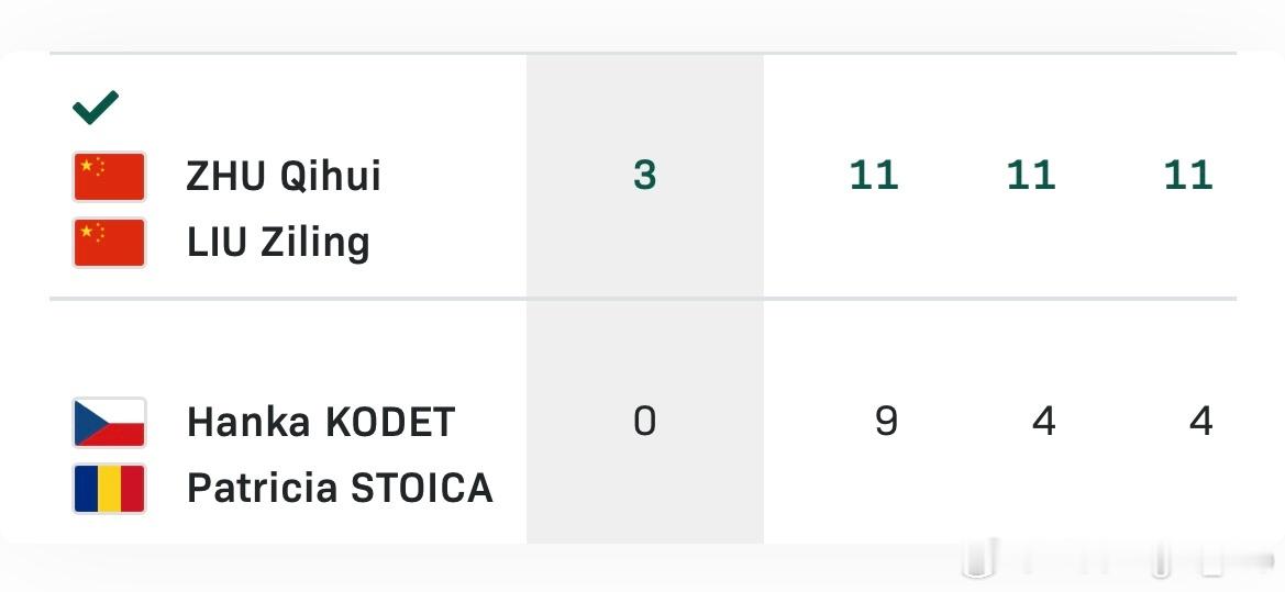2025年国际乒联世青赛U15女双1/4决赛🇨🇳祝启慧/刘子菱3比0科德🇨🇿/斯托伊卡🇷🇴(11-9,11-4,11-4)