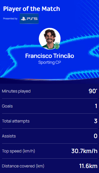 赛后,他也被欧足联技术小组评选为本场比赛的全场最佳球员。