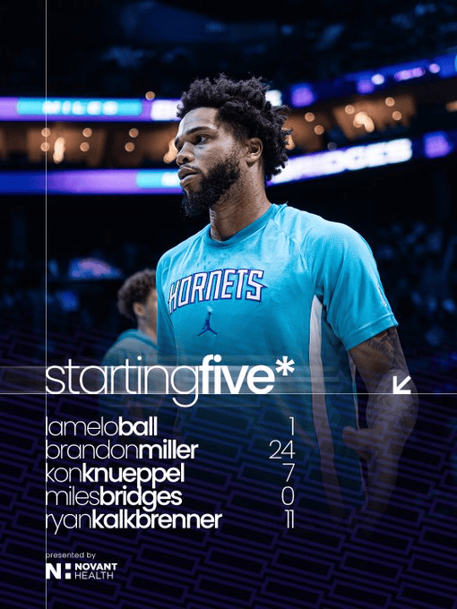 赛前黄蜂更新社媒,公布了今日比赛首发阵容。