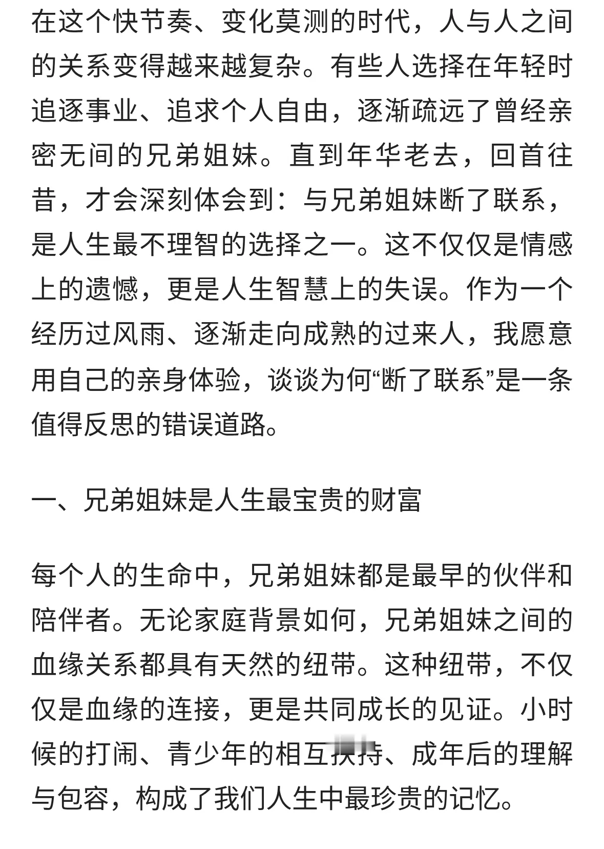 过来人的感悟:与兄弟姐妹断了联系,是人生最不理智的选择