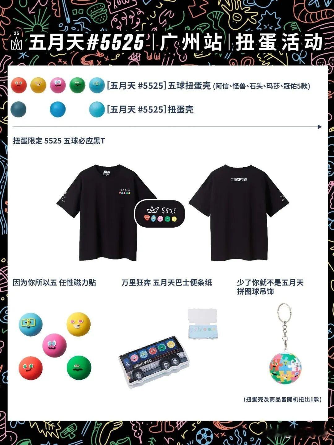 【MAYDAYLAND来南沙啦!这个周六起!】MAYDAYLAND广州站官宣落地南沙环宇城! 活动日期:2025/11/29(星期六)~12/16(星期二) 活动地点:中国铁建·南沙环宇城 L1西中庭(进①、②号门)及L135A店铺 现场届时有MAYDAYLAND主题展区,MAYDAYLAND store,多种城市限定新品鸡腿管家、雪花音乐盒首卖。另外还有5525扭蛋机,还有留影拍贴机。 每日提供4个扭蛋时段选择,各扭蛋时段数量有限,总数量为12万颗扭蛋(主办单位有权调整各时段数量分配),供各时段规划分配数量,售完即止。 演出日扭蛋活动:12月5、6、7、12、14、15日 非演出日扭蛋活动:11月29至30日,12月1至4日、8至9日、10至11日、13日、16日