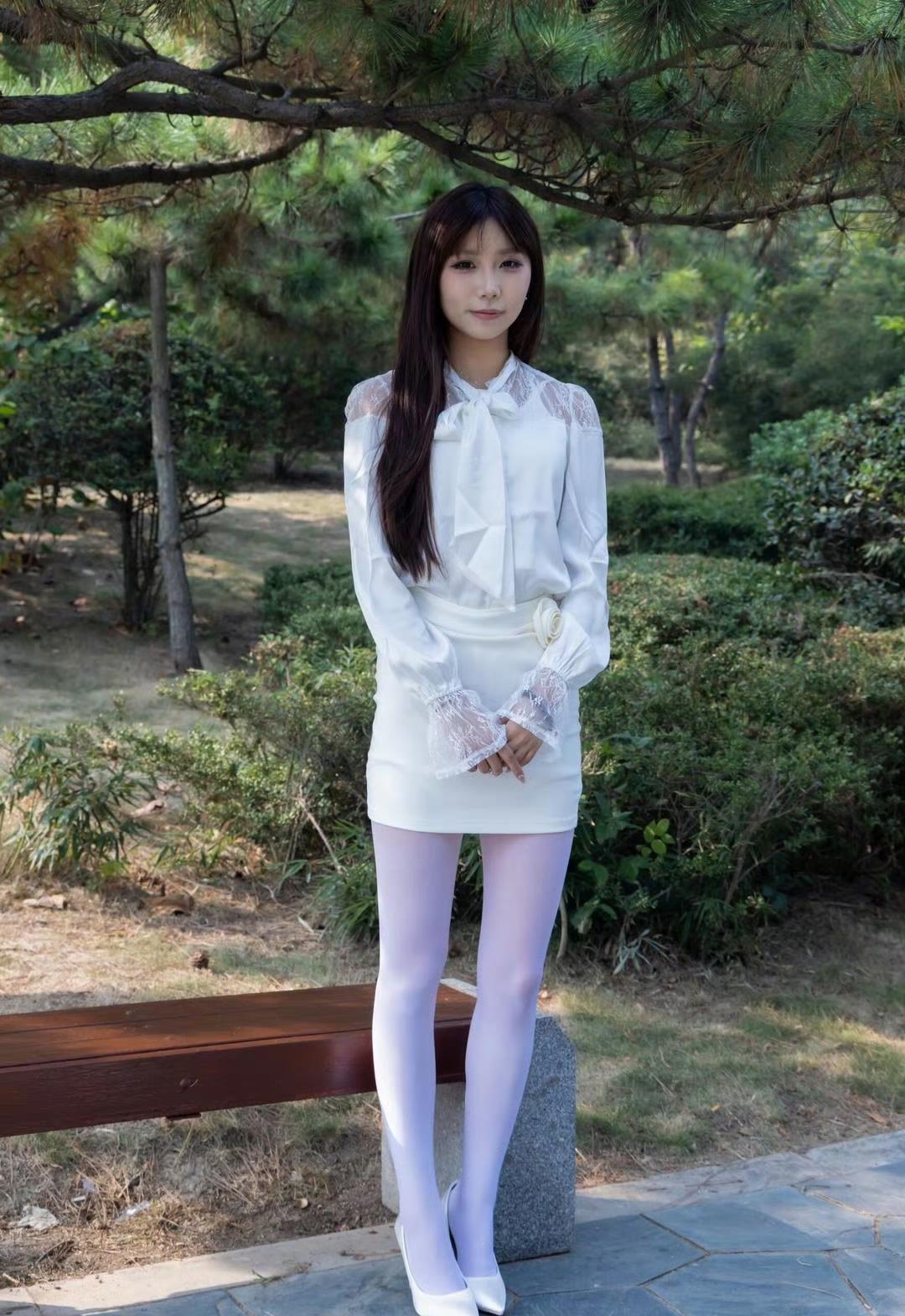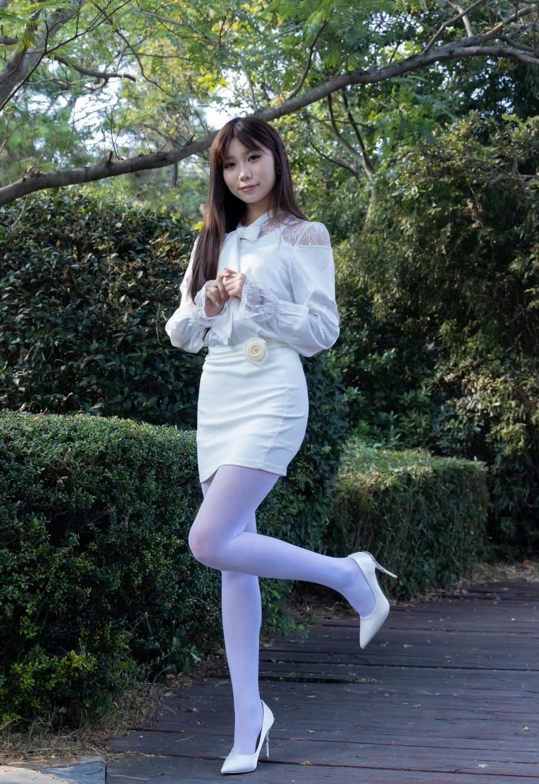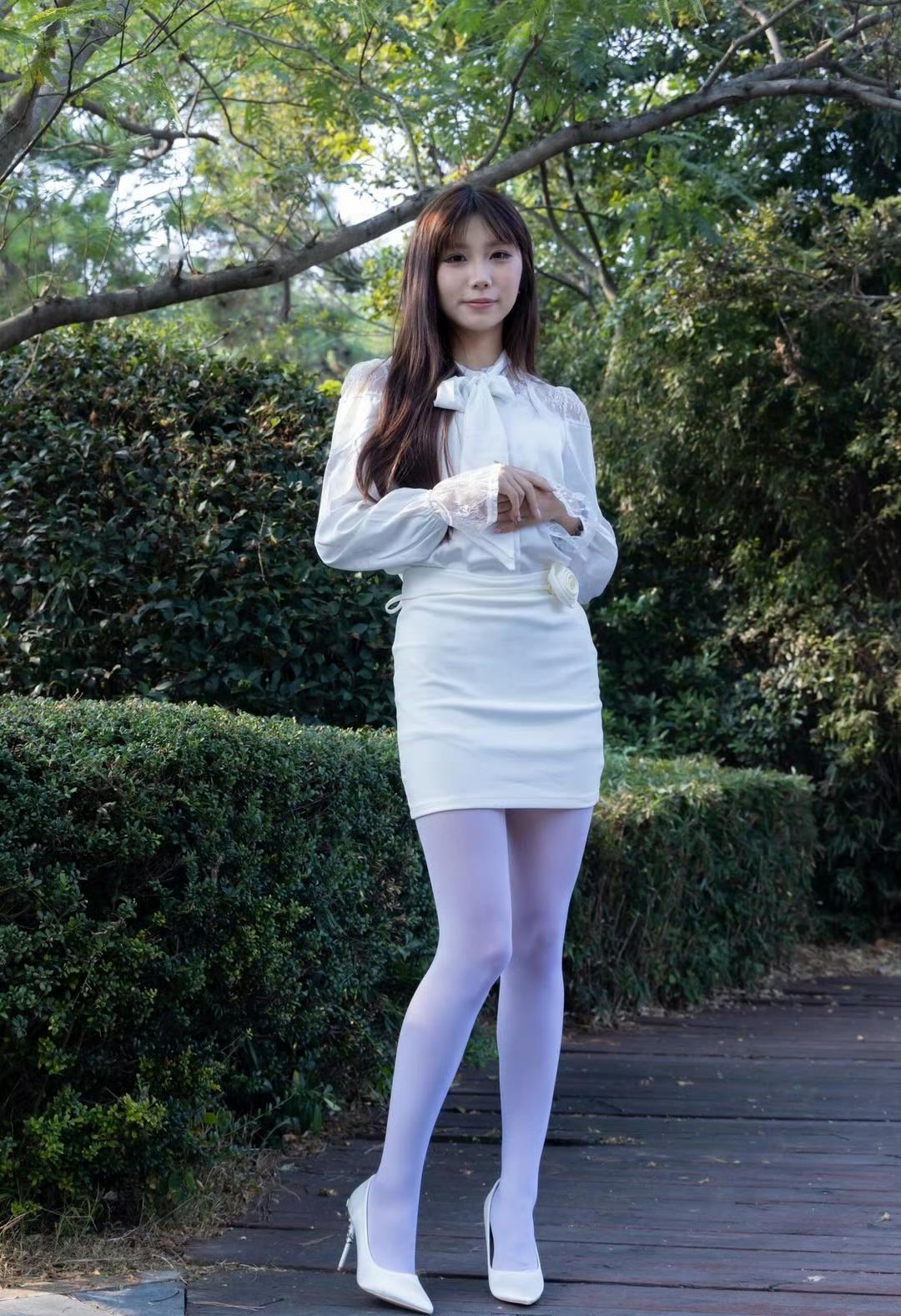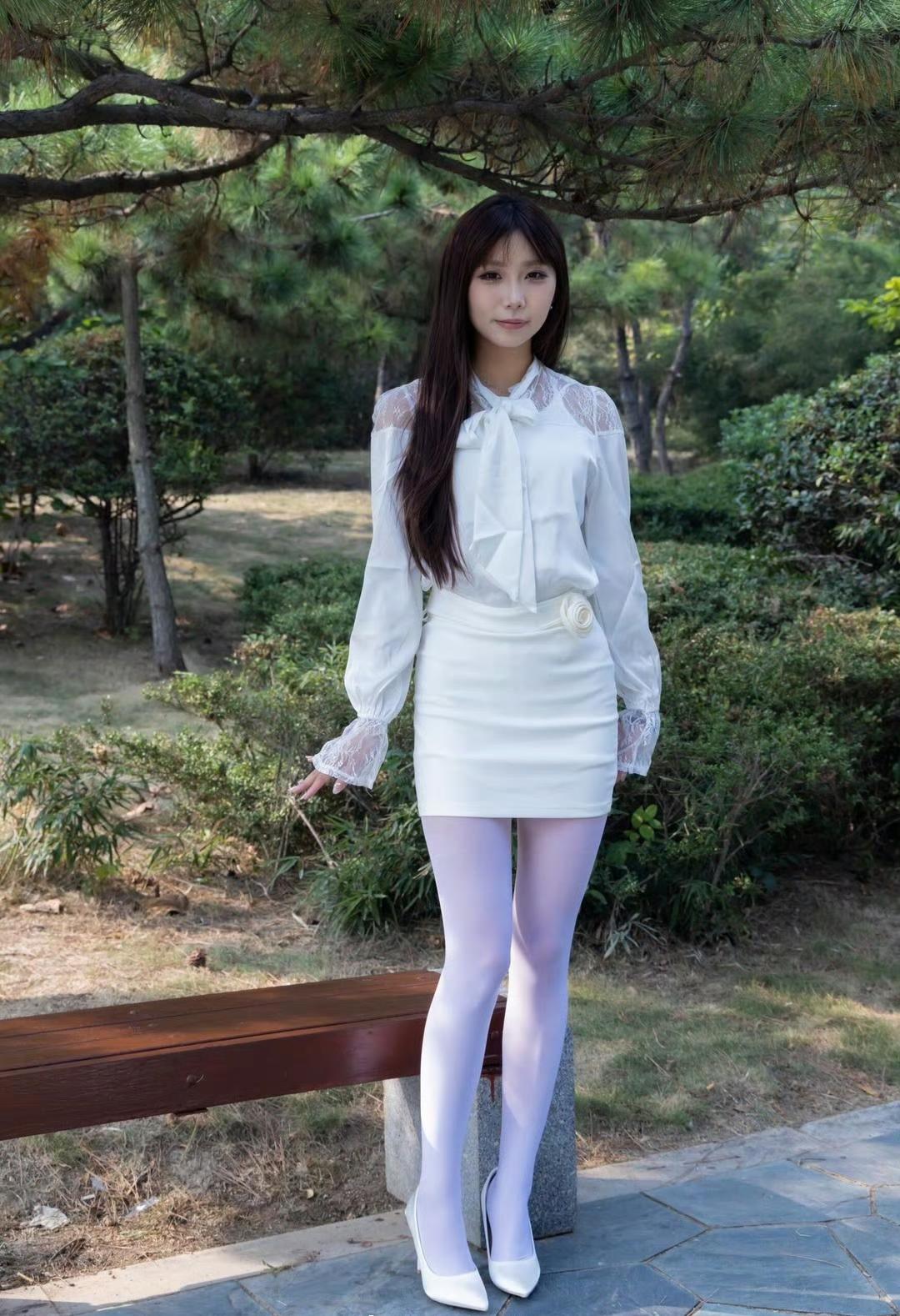 这套穿搭将优雅甜美与精致浪漫完美融合,尽显清新的少女气质。白色蕾丝拼接衬衫设计精致,蕾丝元素与蝴蝶结领口充满浪漫甜美感,长袖版型增添了优雅气质;搭配同色系包臀短裙,简约修身,凸显身材曲线,裙身的花朵装饰为整体注入了精致细节,提升了造型的甜美度。 搭配白色尖头高跟鞋经典又具优雅感,与整体风格和谐统一,提升了造型的精致度。能充分展现穿着者优雅甜美又不失精致浪漫的独特魅力。白色蕾丝衬衫 白色系穿搭