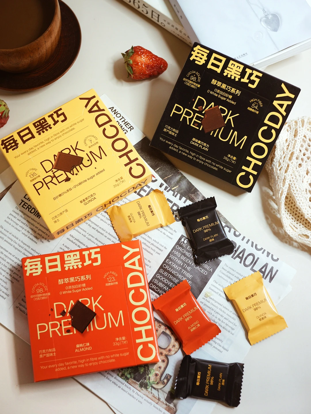 每日黑巧醇萃系列黑巧克力一共有3️⃣种口味,原味的黑巧克力我愿意称它为,巧克力界的黑美式☕带着一点点浆果的酸苦🍒是回甘hin纯粹的可可味。藜麦🌾和扁桃仁黑巧克力是在原味的基础上,分别加了藜麦米和扁桃仁。不仅越嚼越香,能吃到酥脆的藜麦米和扁桃仁,还可以闻到淡淡藜麦的香气;轻度烘焙的扁桃仁融合着可可的香气,仿若在舌尖跳舞💃🏼